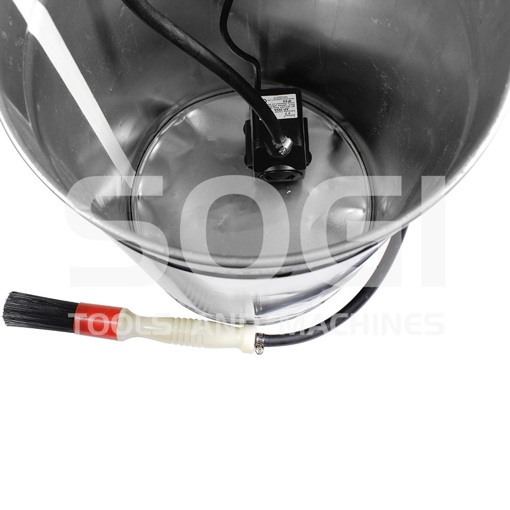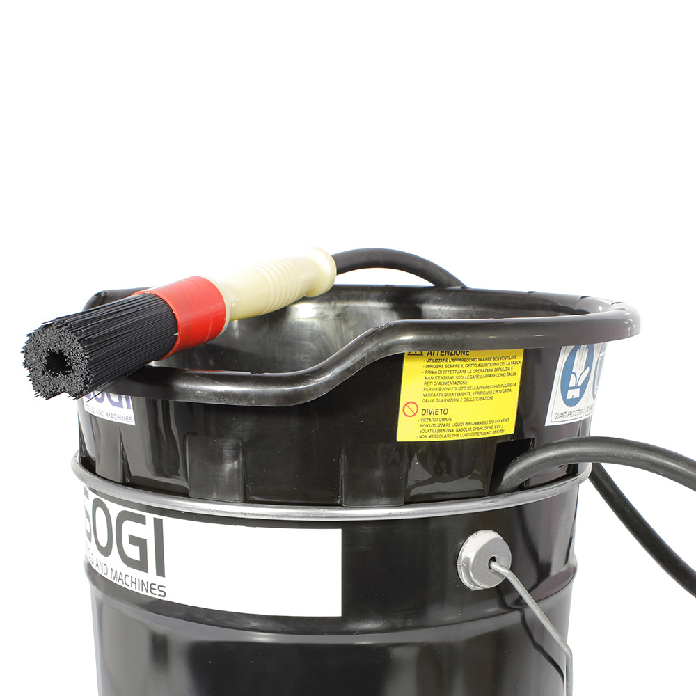 La vasca lavapezzi SOGI SP-LV-C si adatta alla maggior parte dei secchi è dotata di pompa a recupero con pratico tubo con pennello, ideale per il lavaggio di particolari, strumenti d'officina, pezzi vari che necessitano la pulizia.