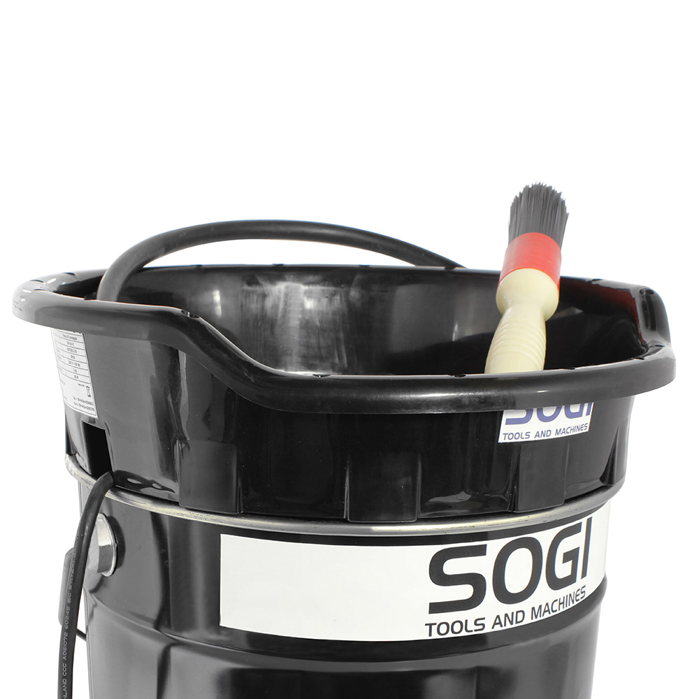 Inoltre questa vasca può essere utilizzata a casa o in officina per lavori di pulizia, idonea all'utilizzo di agenti sgrassanti diluiti in acqua come i prodotti SOGI Cleaner o lo Sgrassante SOGI K110. È dotata di certificazioni CE a norma di legge.