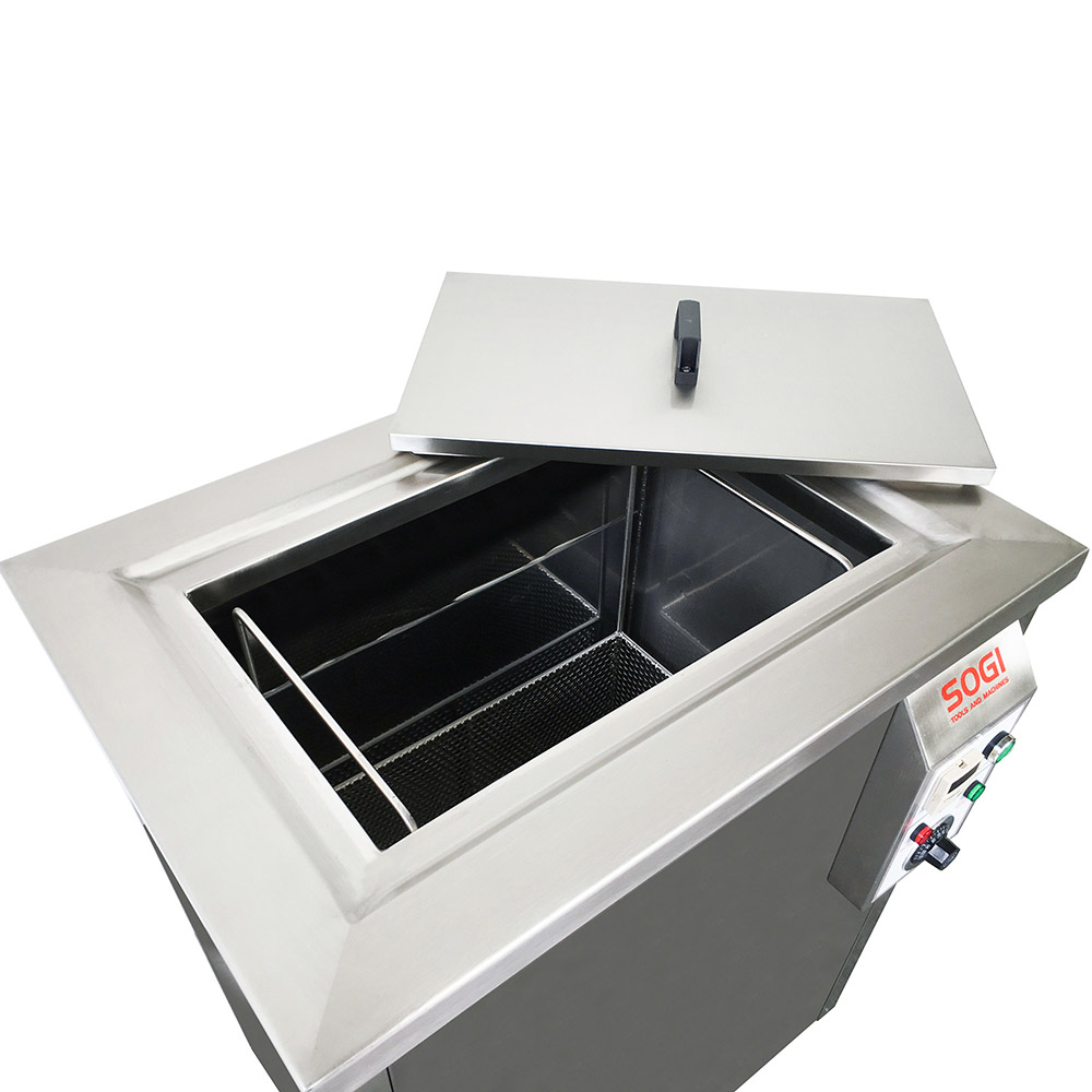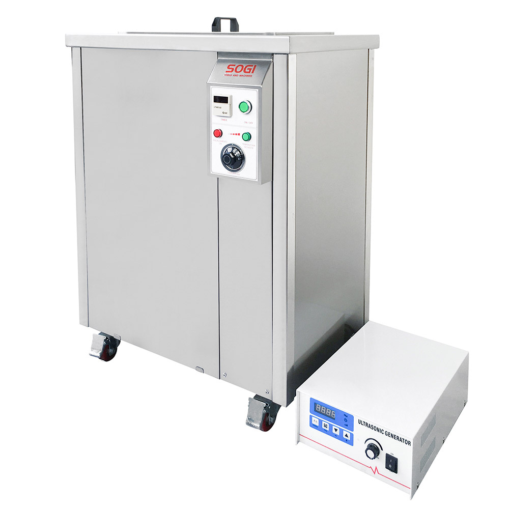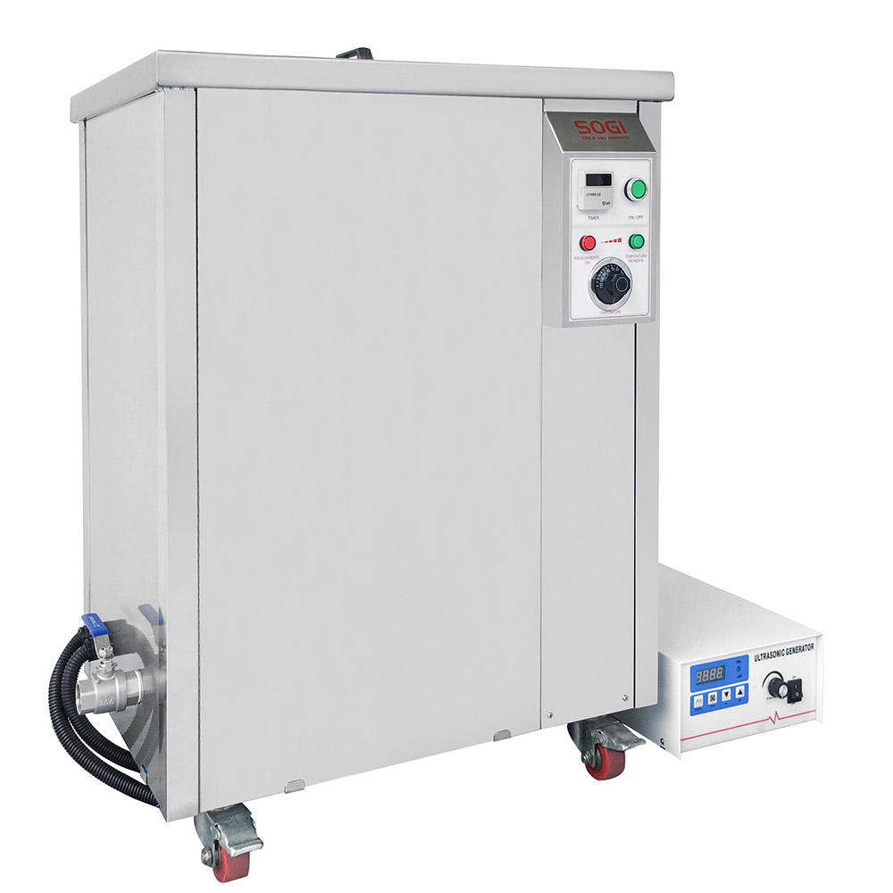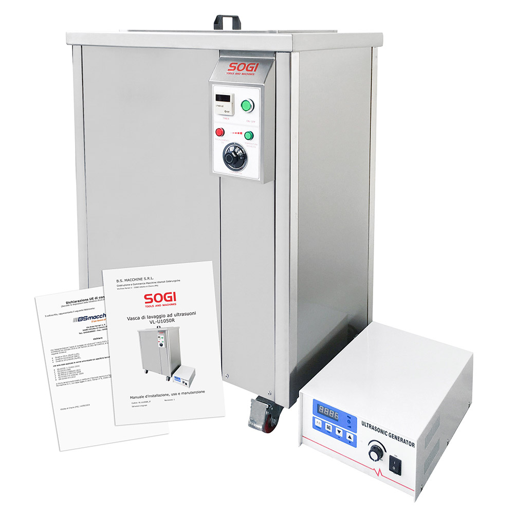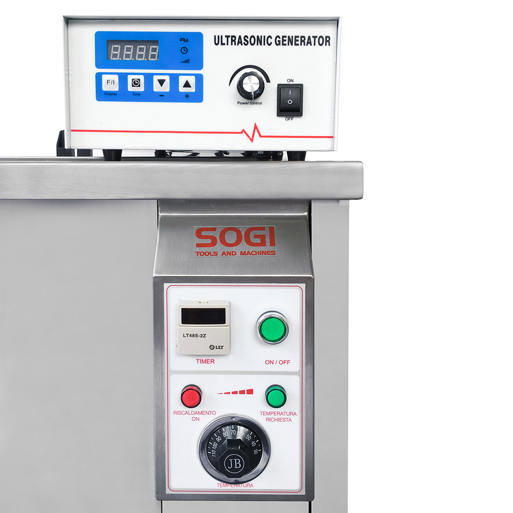 La vasca di lavaggio a ultrasuoni SOGI VL-U1050R è realizzata interamente in acciaio inox per contrastare la corrosione dei solventi o liquidi sgrassanti utilizzati durante il lavaggio dei pezzi. É inoltre dotata di riscaldamento con un massimo di 80° Celsius. Predisposta di ventola di raffreddamento per il sistema di alimentazione.
