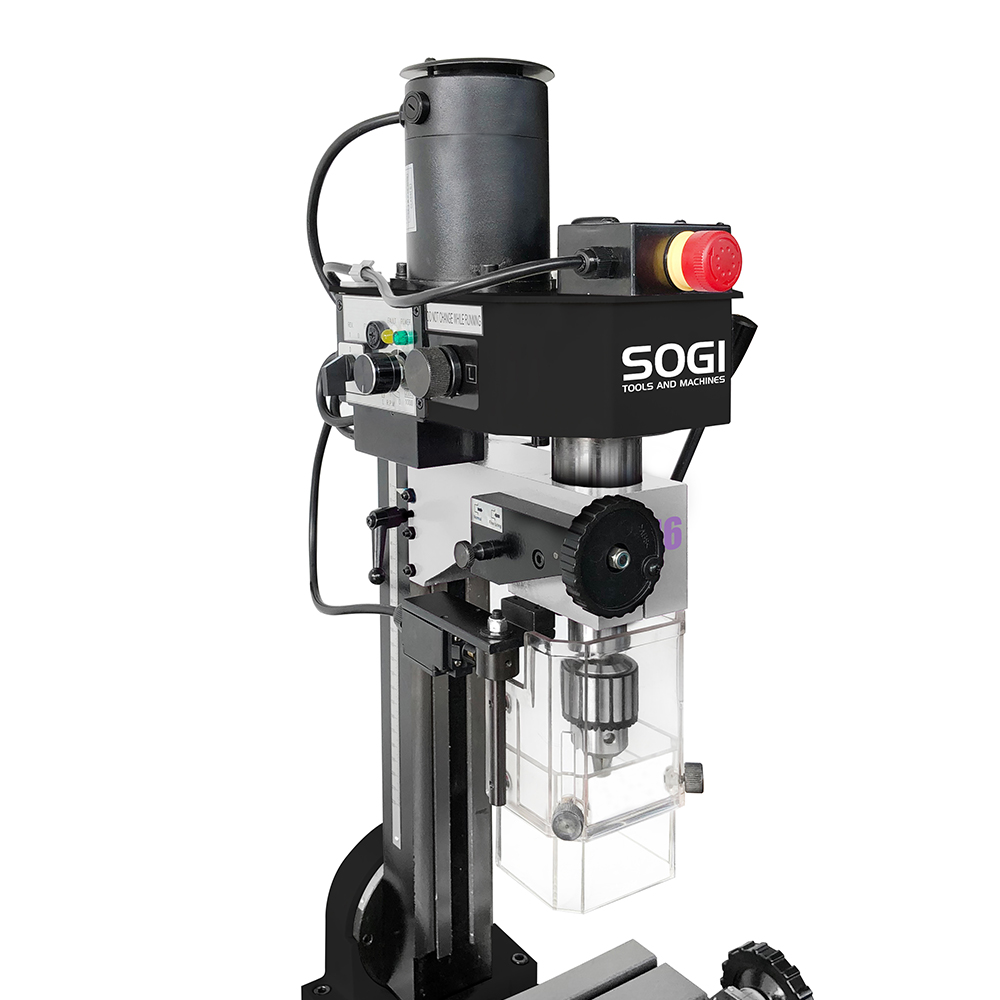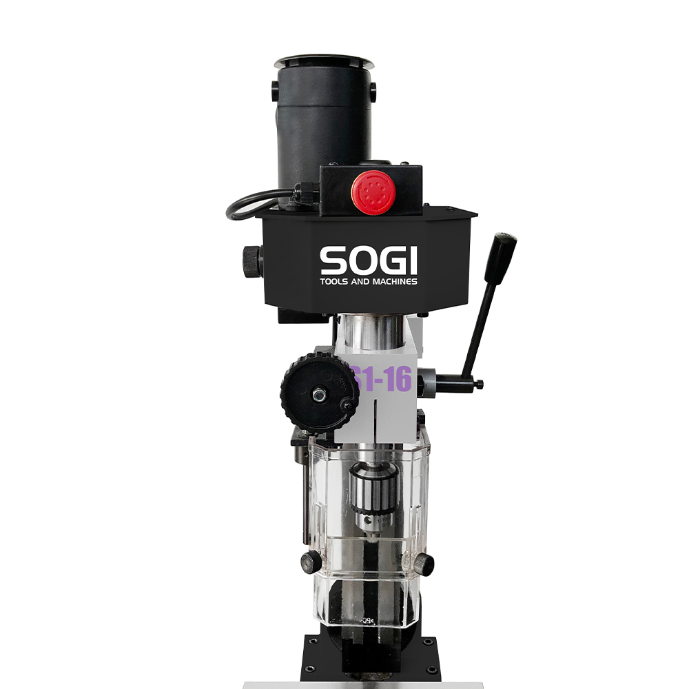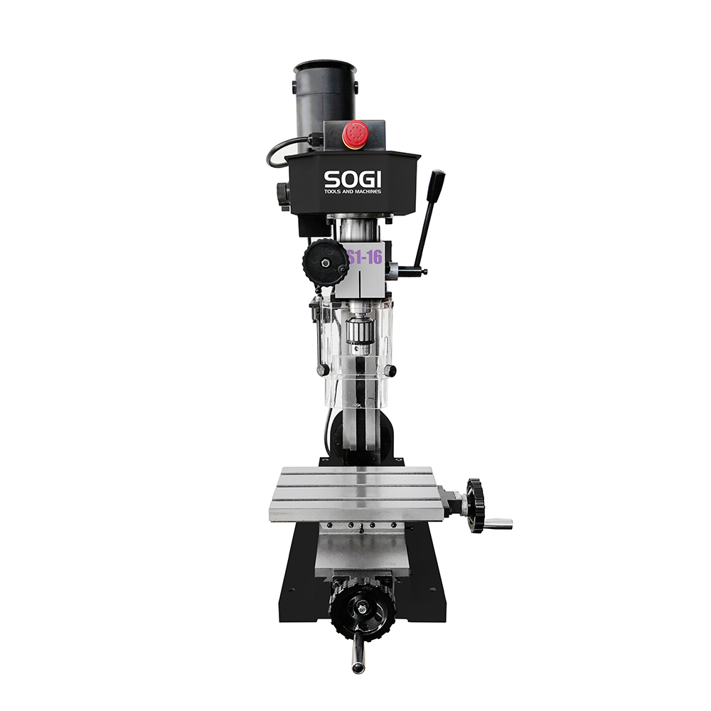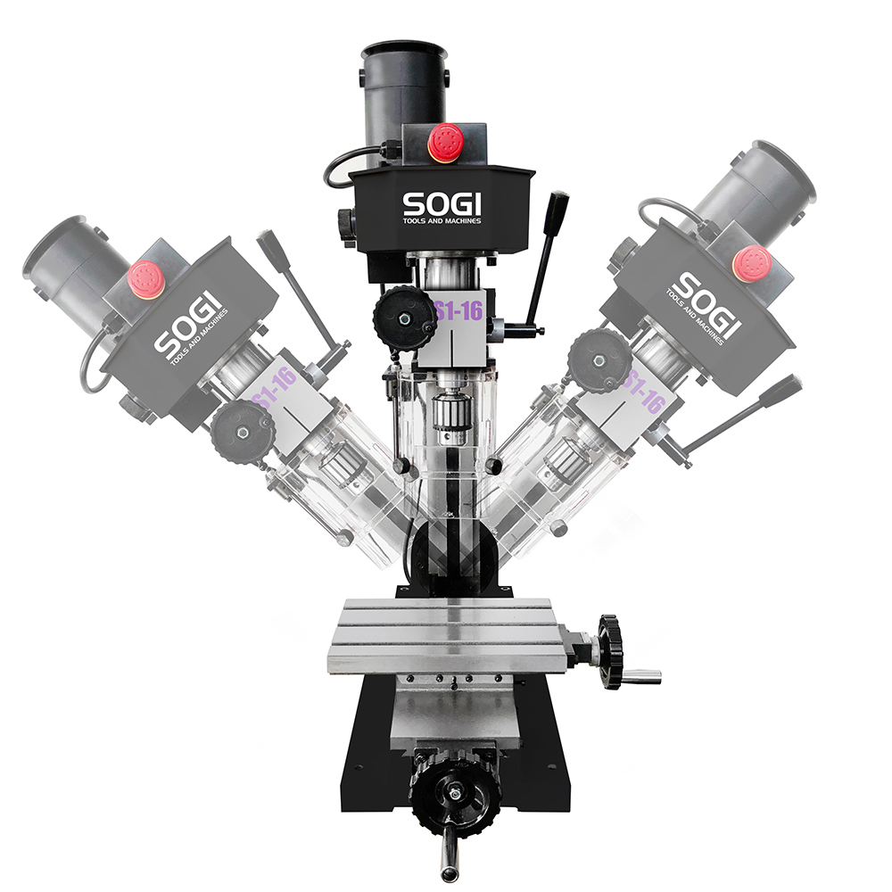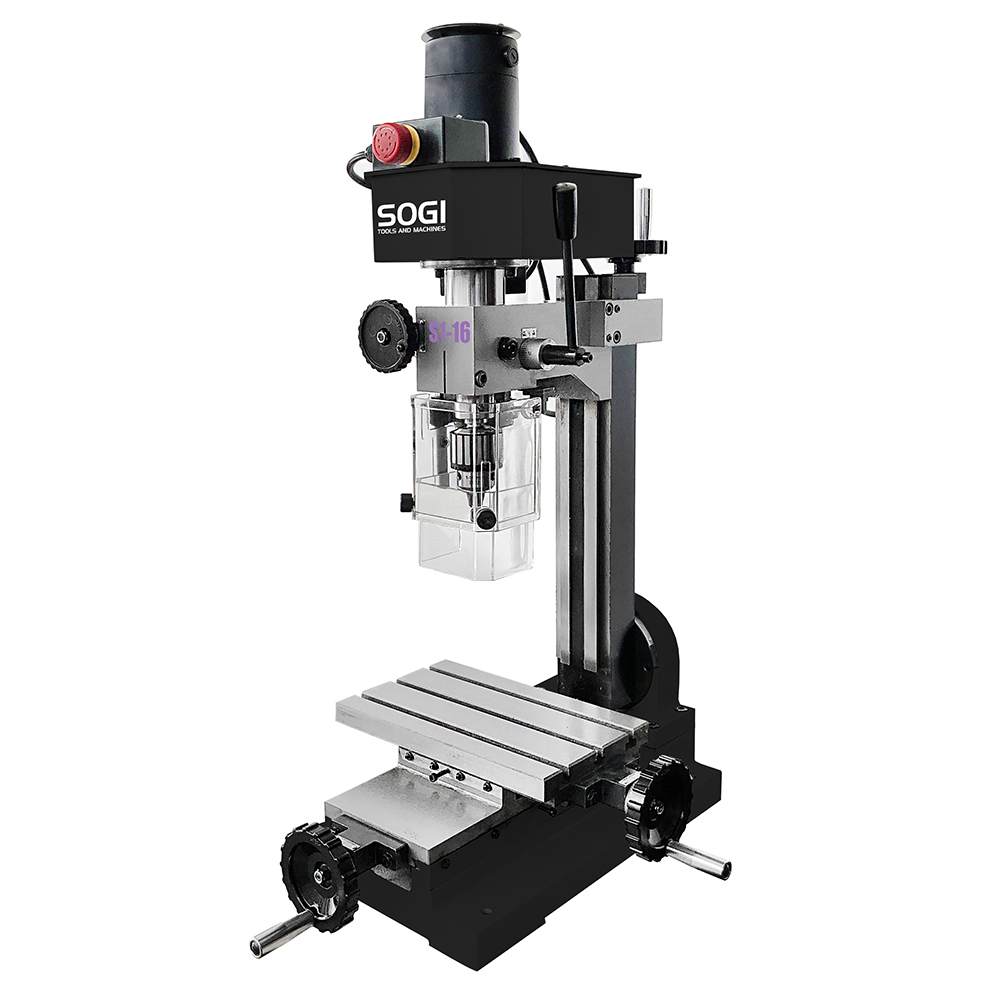 La fresatrice da banco SOGI S1-16 è una macchina utensile funzionale e compatta, in grado di eseguire forature, alesature, filettature (per mezzo di appositi maschiatori a frizione) e fresature (con l’ausilio di utensili a candela, ad inserti o a disco) su materiali quali ghisa e acciaio. Grazie alle sue dimensioni ridotte ed al peso contenuto, il trapano-fresa SOGI S1-16 si adatta particolarmente bene sia ad un uso professionale che hobbistico.