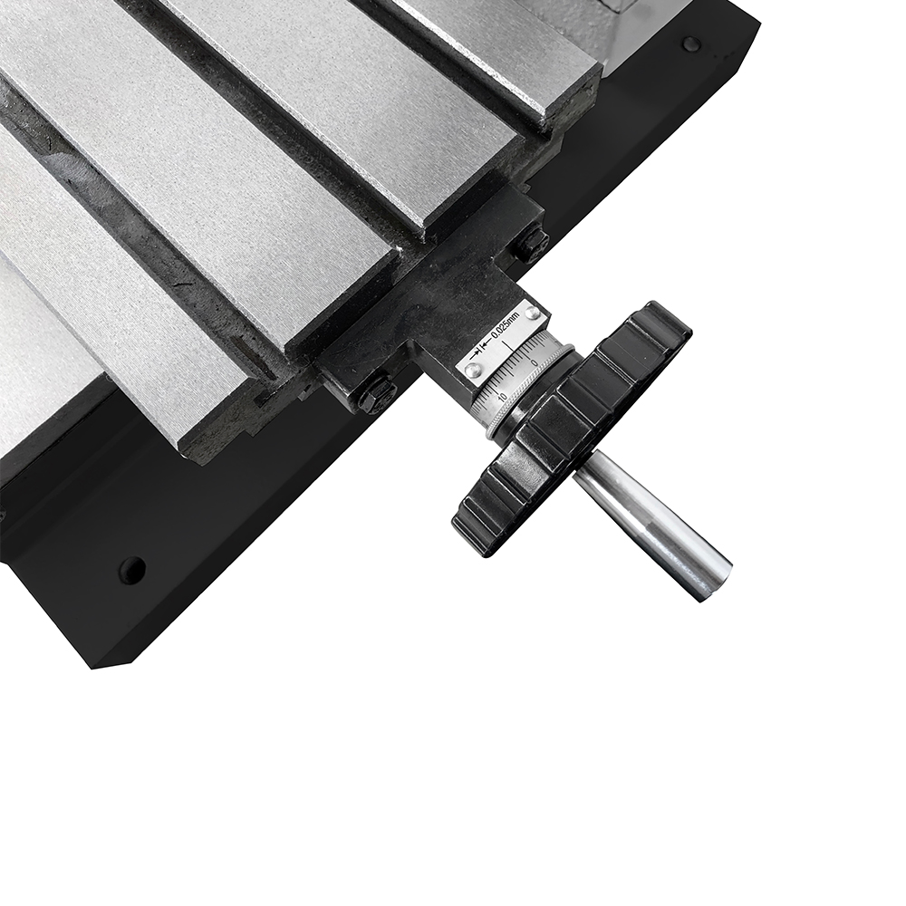 La fresatrice manuale SOGI S1-16 è provvista di volantini con noni graduati per gli spostamenti longitudinali e trasversali della tavola portapezzo e per la discesa micrometrica del cannotto. Inoltre, sempre per mezzo di pratico volantino, è possibile muovere la testa in direzione verticale per allontanarla o avvicinarla al pezzo in lavorazione. Le guide di scorrimento a coda di rondine, così come la tavola portapezzo, sono temprate e rettificate: la presenza di lardoni conici regolabili incrementa la resa delle guide in termini di precisione e stabilità.