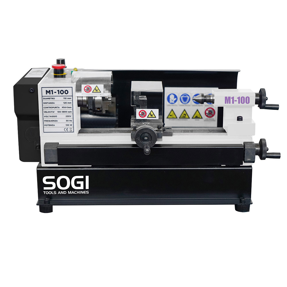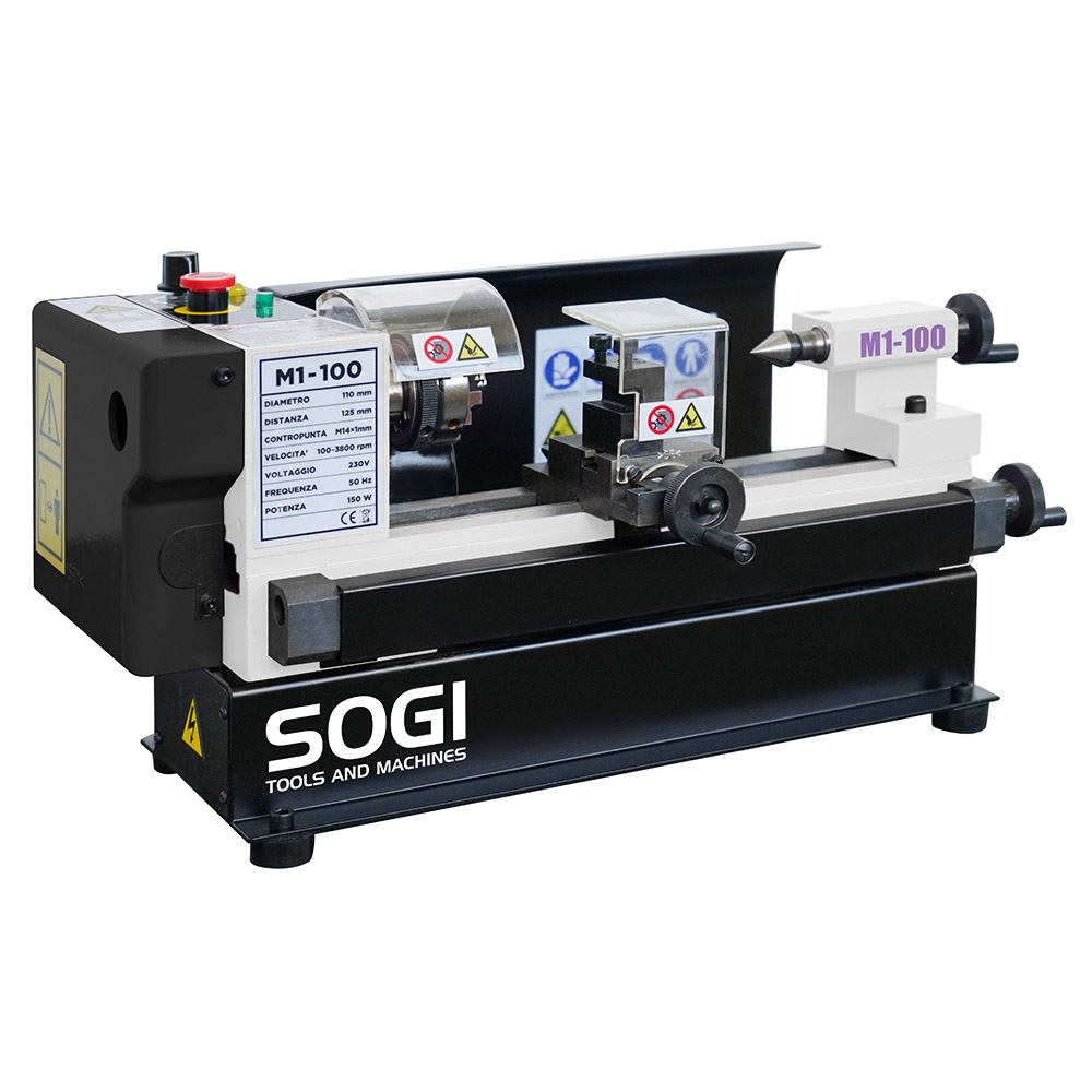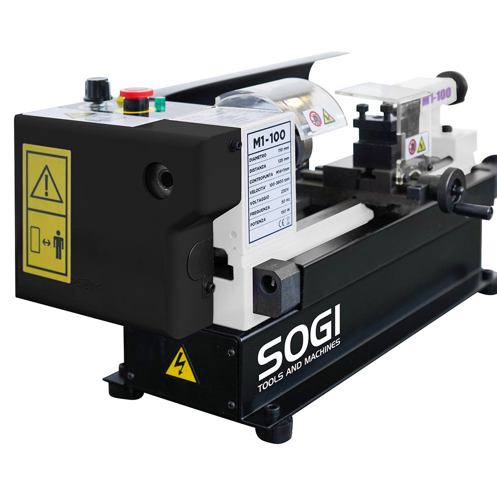Il tornio parallelo da banco SOGI M1-100 è una macchina utensile in grado di realizzare torniture (sia interne che esterne) e forature di pezzi in metallo. Grazie alle sue intuitive funzioni ed agli ingombri ridotti (meno di mezzo metro di lunghezza) si rivela la scelta ottimale per chiunque si approcci per la prima volta al mondo della tornitura.