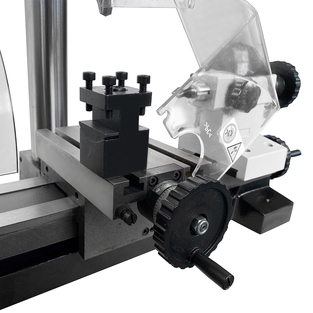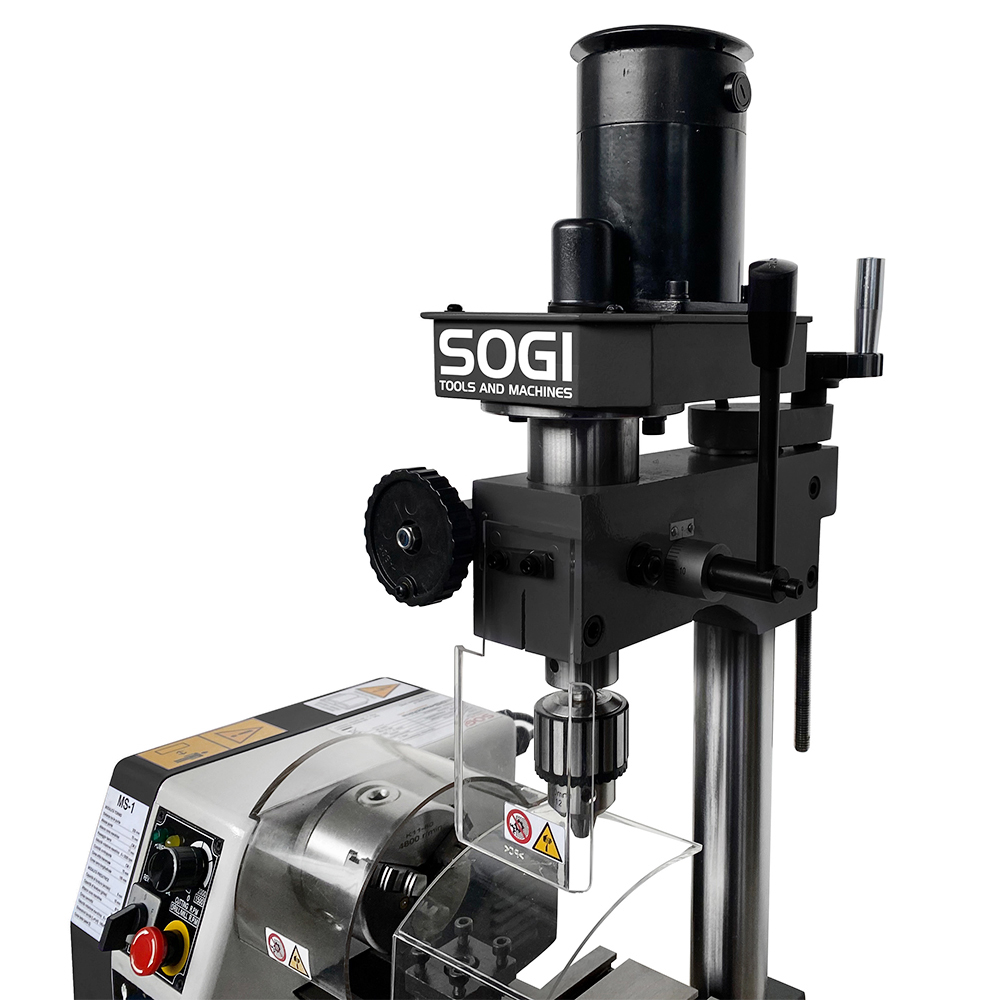 Sul bancale munito di nervature di rinforzo, le guide sono a coda di rondine, atte a garantire accoppiamenti sistematici tra le parti. Le slitte che scorrono lungo le guide sono realizzate per mezzo di lavorazioni di precisione e sono regolabili tramite lardoni conici. Il mandrino, invece, poggia su appositi cuscinetti di qualità. Il mini tornio con fresatrice SOGI MS-1 ha l'avanzamento longitudinale automatico per un'esecuzione ineccepibile della lavorazione.