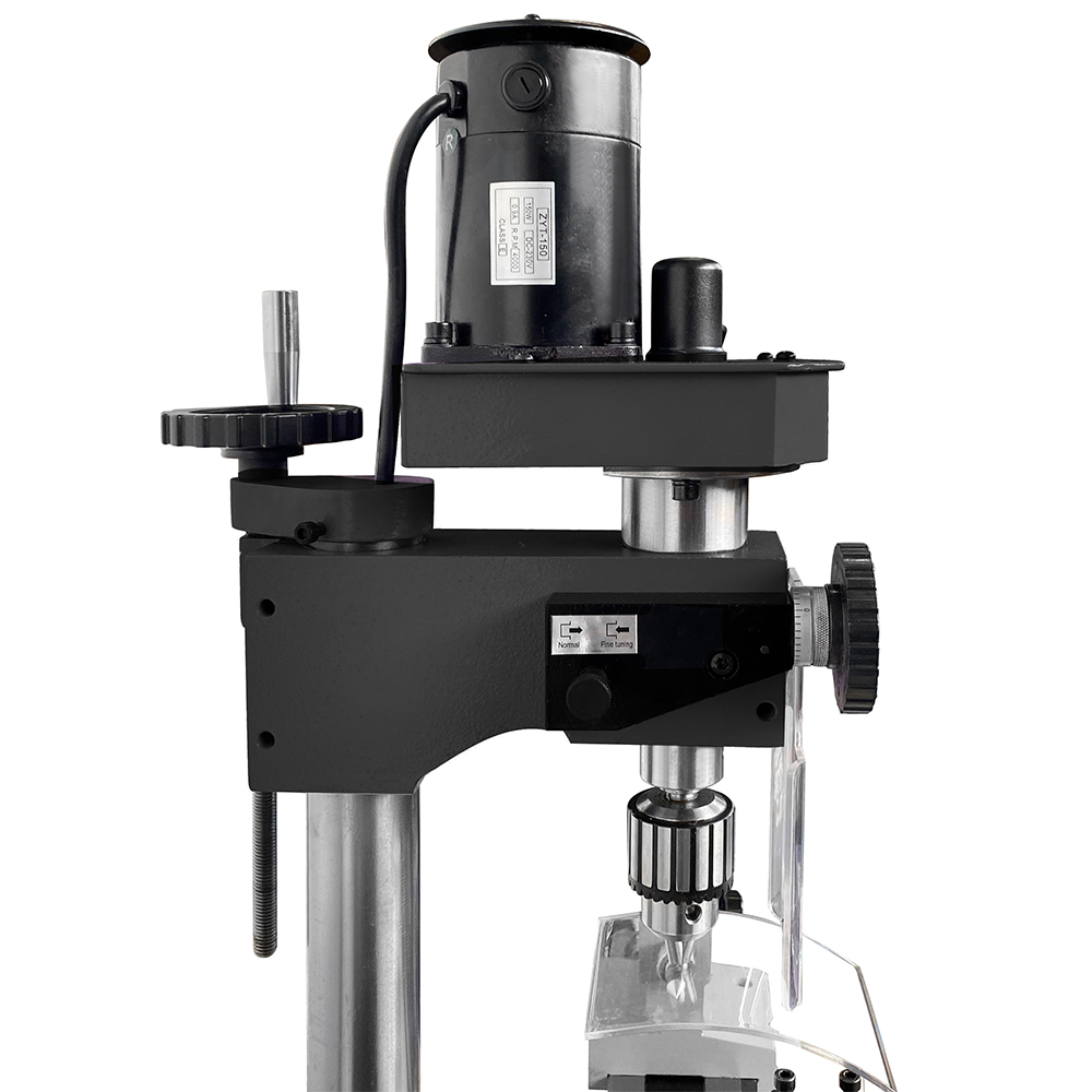 La testa a fresare racchiude il sistema di trasmissione del moto responsabile della rotazione del mandrino: anch'esso è azionato da un motore in corrente continua monofase da 150 W comandato dalla scheda madre locata nella testa motrice del tornio. È possibile far scorrere la testa a fresare lungo un montante in acciaio per mezzo di apposito volantino: la discesa del cannotto può essere micrometrica o rapida, a seconda della precisione che si vuole ottenere.