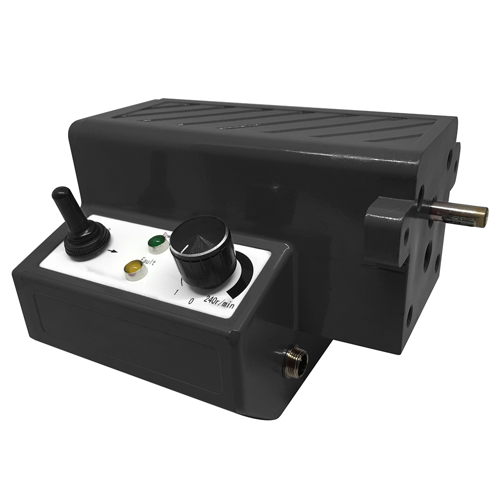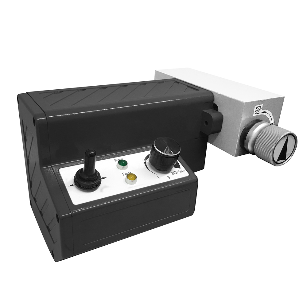 Motorizzazione SOGI AVT-S3-70D per fresatrice SOGI S3-70D per asse X tavola con avanzamento tramite potenziometro regolabile per spostamenti rapidi e lenti, inoltre la rotazione del motore è sia in senso orario che antiorario. Dotato di dispositivo salva circuito e segnalatore di anomalia tramite led incorporato su quadro comandi.
