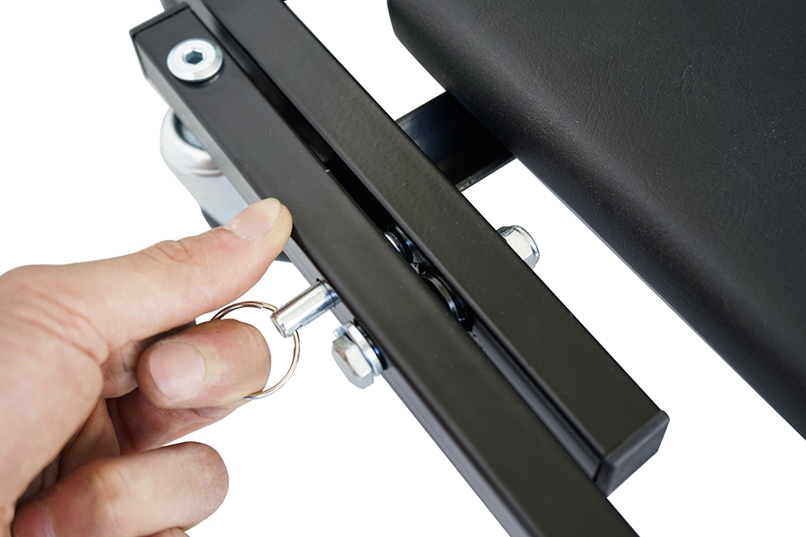 • Bloccaggio tramite perno di sicurezza delle due modalità, lettino o seggiolio