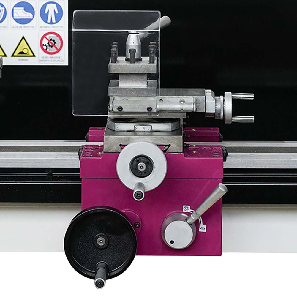 Il tornio da banco 800SGI0290 ha l'avanzamento longitudinale automatico per l'esecuzione sistematica della lavorazione. La contropunta è regolabile per torniture coniche con scostamenti dell'ordine dei ± 5 mm. Servendosi del set di ingranaggi in dotazione e grazie alla presenza della vite madre, è possibile realizzare filettature Metriche e Withworth.