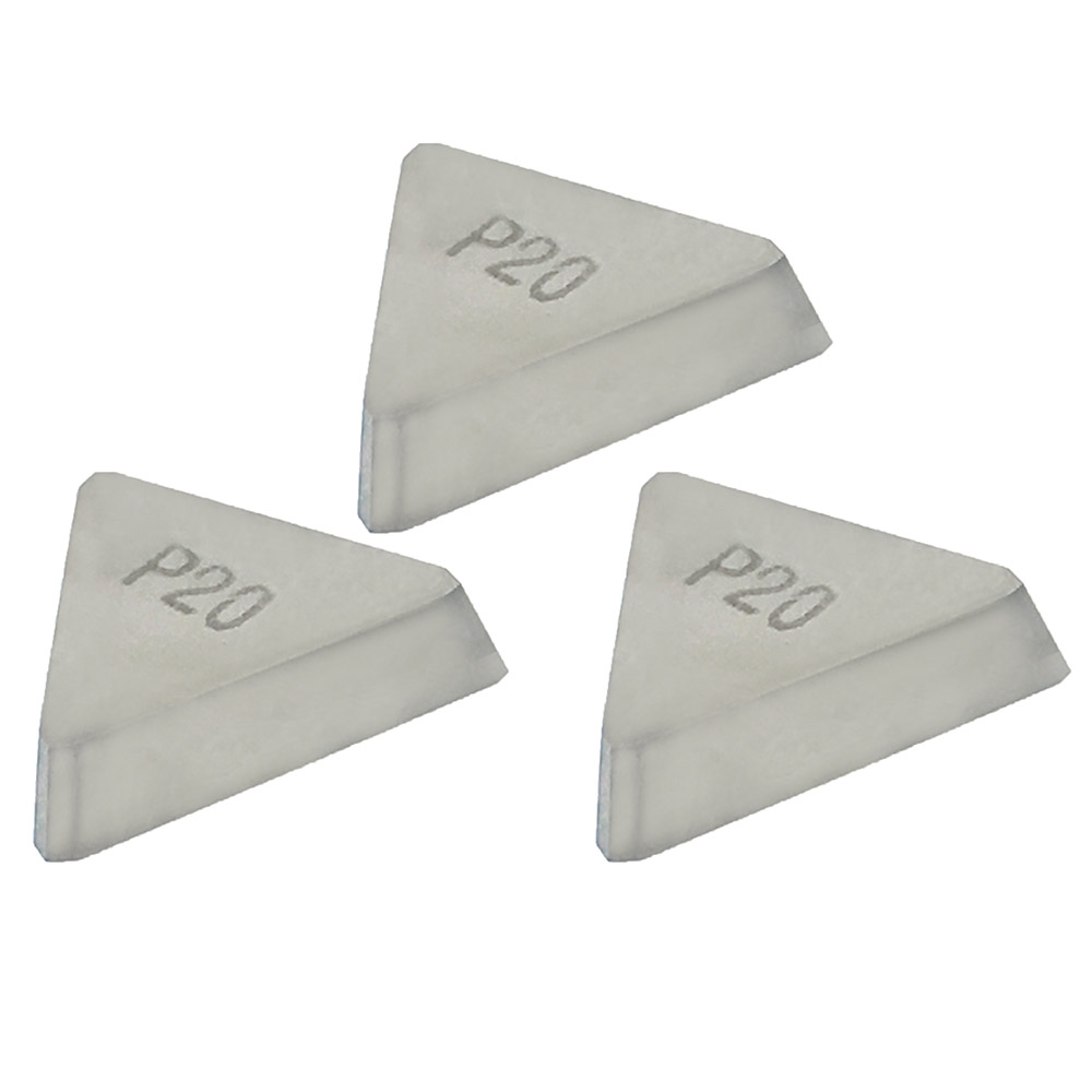 Set di 3 inserti SOGI INS-FRS-50 specifico per fresa a spianare SOGI FRS-50. Grado ricoperto MT-CVD ideale per lavorazioni di sgrossatura di acciai a taglio interrotto. Il particolare substrato tenacizzato abbinato alla nuova ricopertura ad alto spessore garantisce notevole resistenza all'usura e consente notevoli volumi di asportazione truciolo.