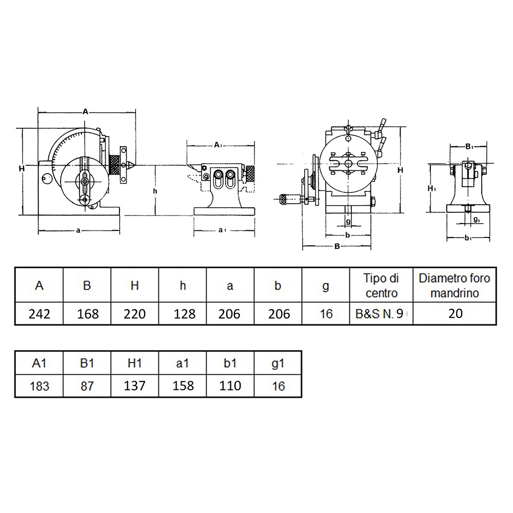 Divisore universale SOGI DIV-BS-1 per fresatrice e trapani-fresa con mandrino 160 mm e accessori