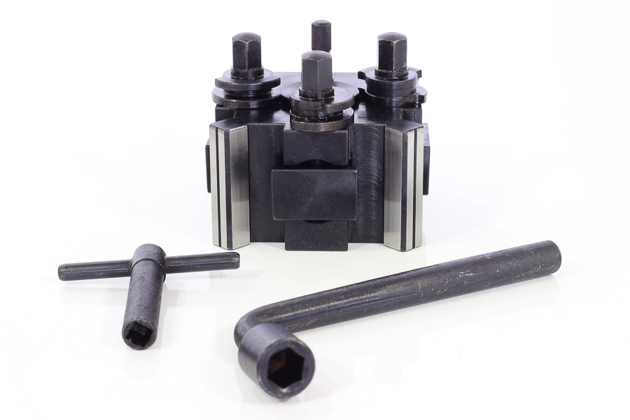 TORRETTA PORTA UTENSILE PER TORNIO A SGANCIO RAPIDO CON 4 CARTELLE SOGI TOR-500 FORO DA 24 E BOCCOLA