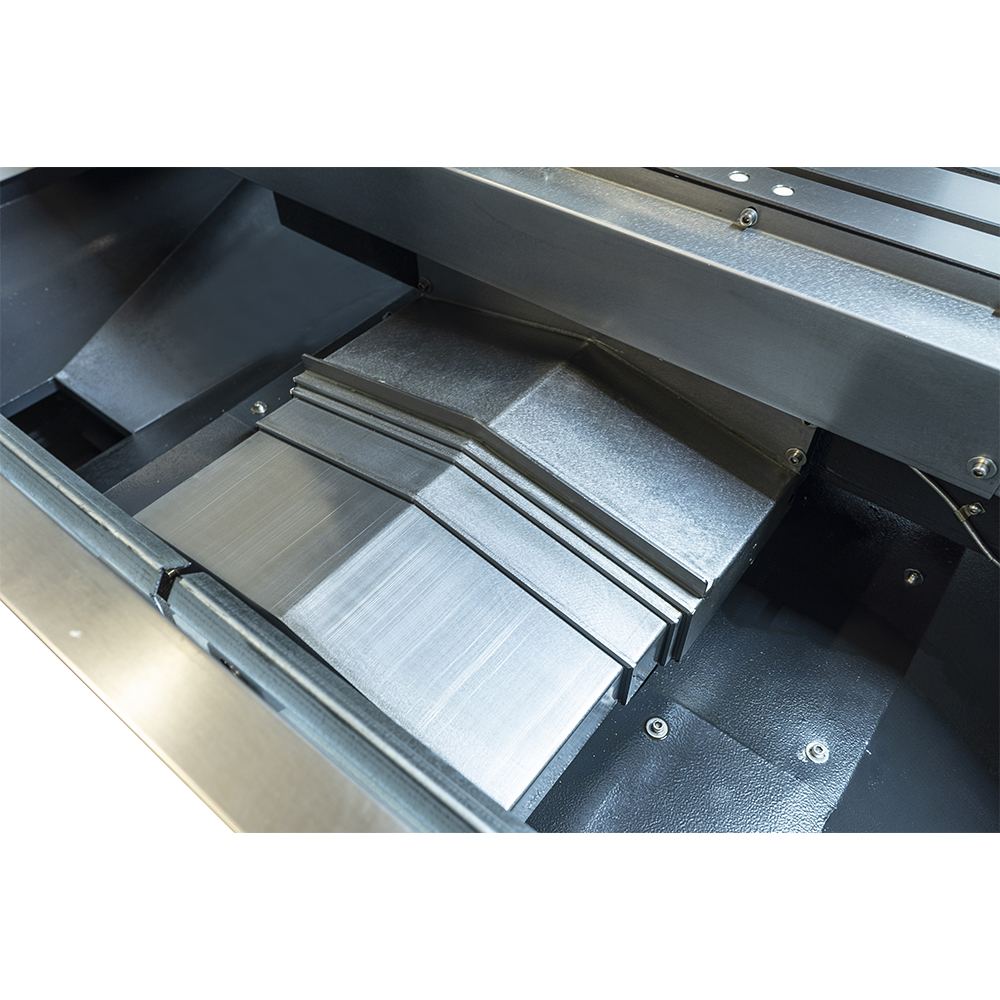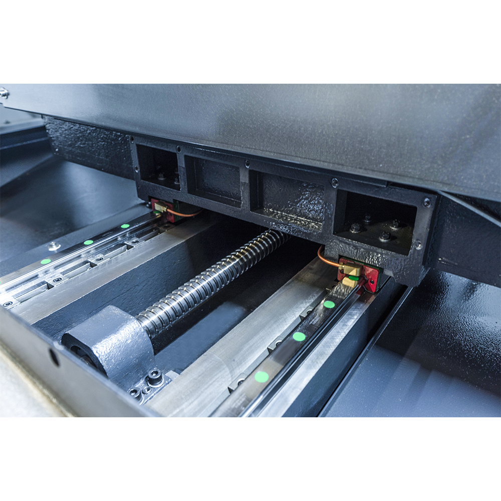 • Tavola e gruppo testa che scorrono su guide lineari rettificate di fattura taiwanese, con pattini a ricircolo di sfere