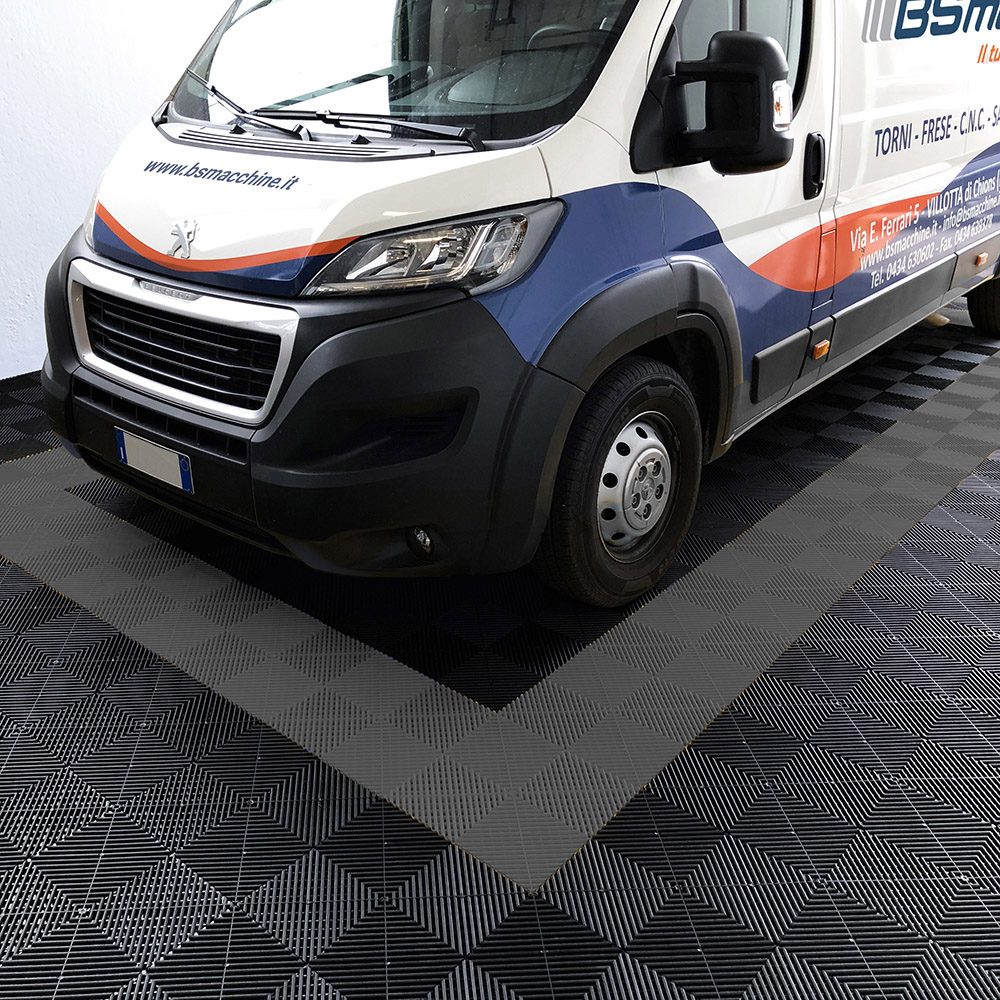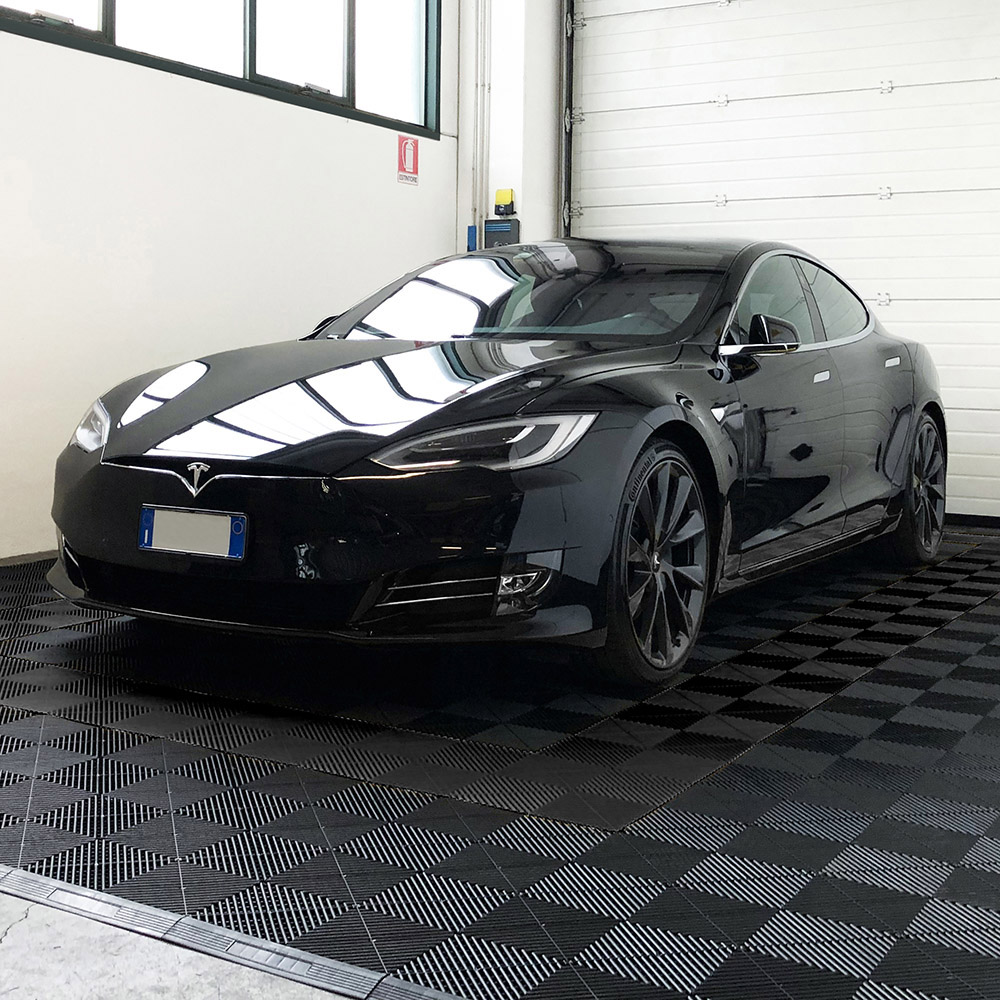 La piastrella SOGI PAV-03-NE è un rivestimento in polipropilene (PP), dalla texture ad effetto drenante: fluidi, polveri e detriti di piccole dimensioni trapassano la mattonella che dunque rimane sempre pulita e asciutta. É particolarmente indicato per pavimentare garage, centri car detailing, autofficine, autosaloni, box, fiere, capannoni, centri sportivi, ed in tutte quelle operazioni dove impatto visivo e resa estetica, ma anche resistenza e durevolezza sono un must.