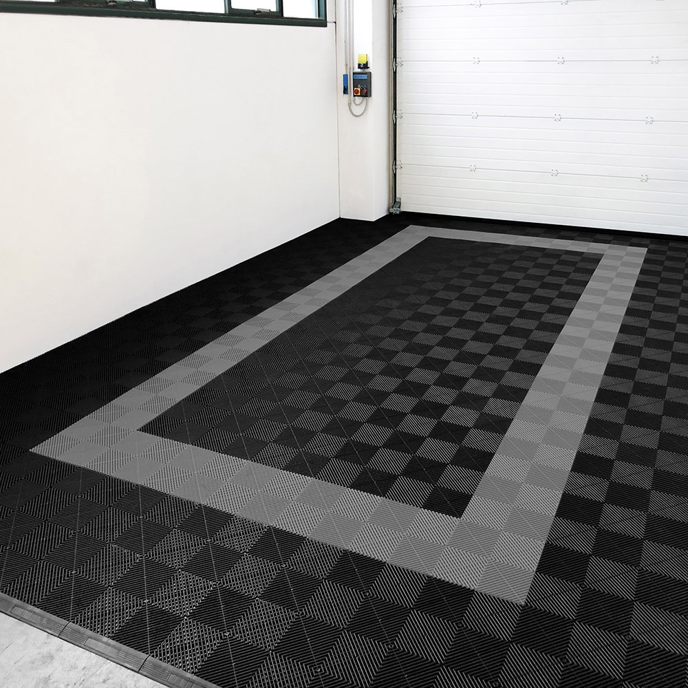 Kit da 62 piastrelle 10 mq SOGI PAV-03-NE_4 in PP per pavimento officina e garage - colore nero