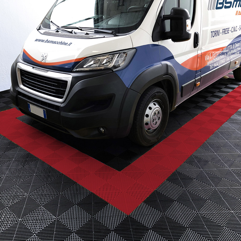 Kit da 625 piastrelle 100 mq SOGI PAV-03-RO_6 in PP per pavimento officina e garage - colore rosso
