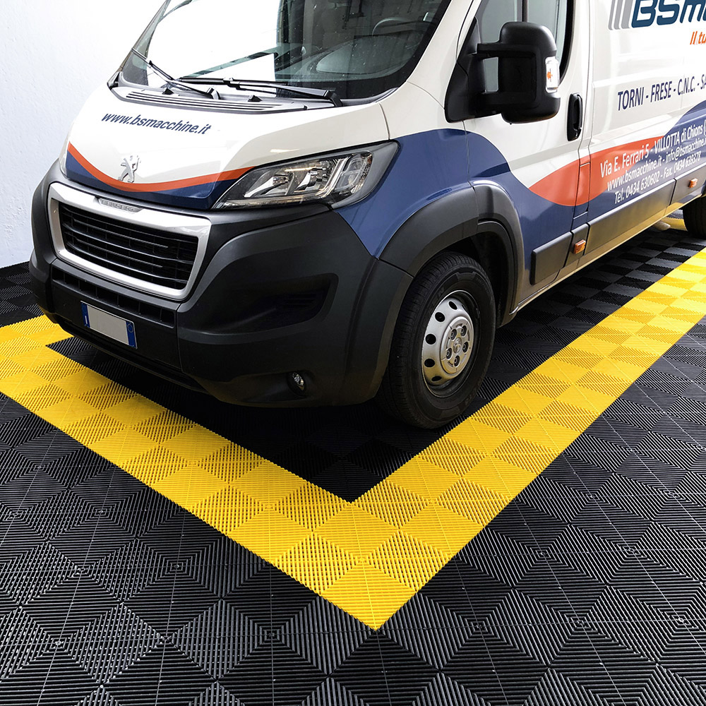 La piastrella SOGI PAV-03-GI è un rivestimento in polipropilene (PP), dalla texture ad effetto drenante: fluidi, polveri e detriti di piccole dimensioni trapassano la mattonella che dunque rimane sempre pulita e asciutta. É particolarmente indicato per pavimentare garage, centri car detailing, autofficine, autosaloni, box, fiere, capannoni, centri sportivi, ed in tutte quelle operazioni dove impatto visivo e resa estetica, ma anche resistenza e durevolezza sono un must.