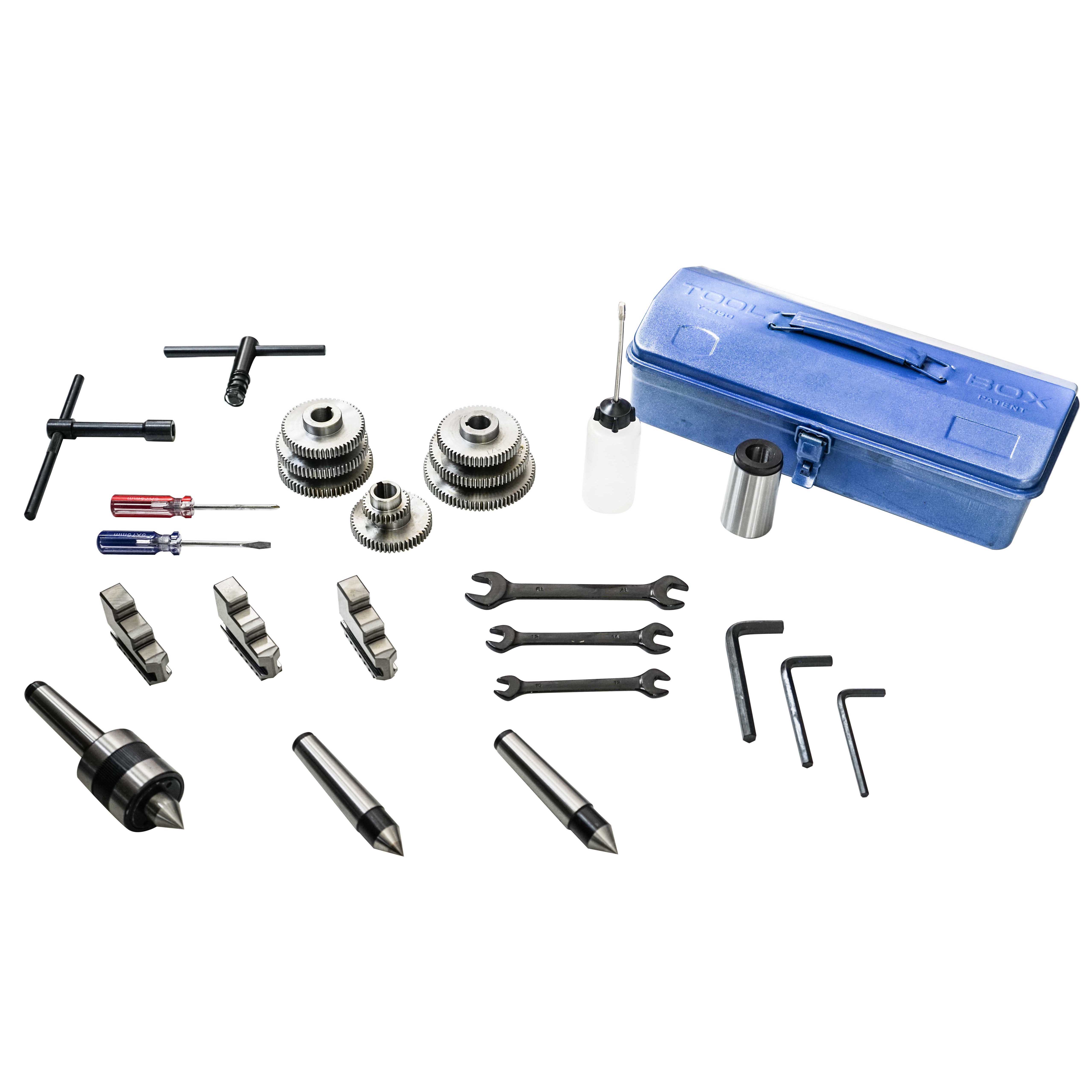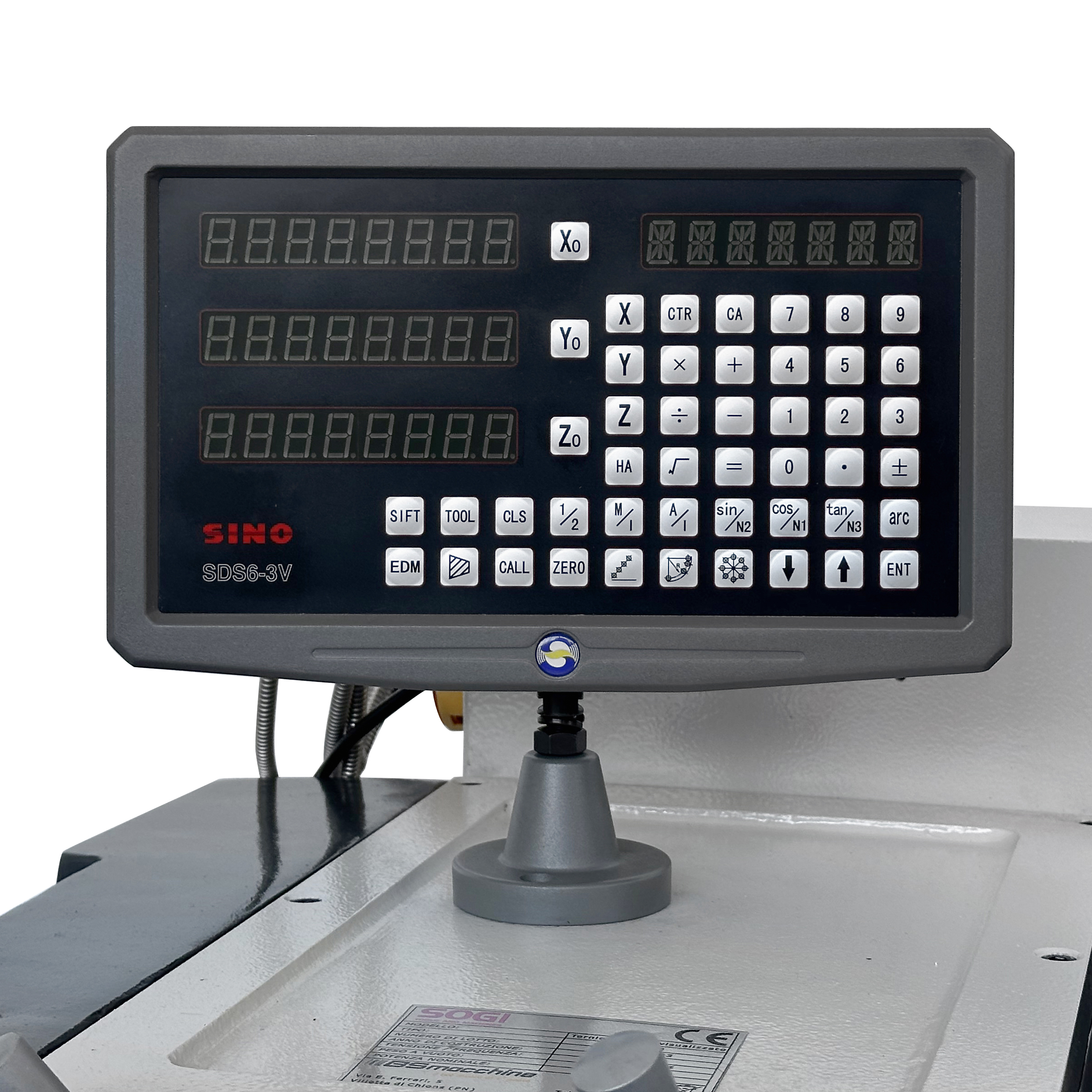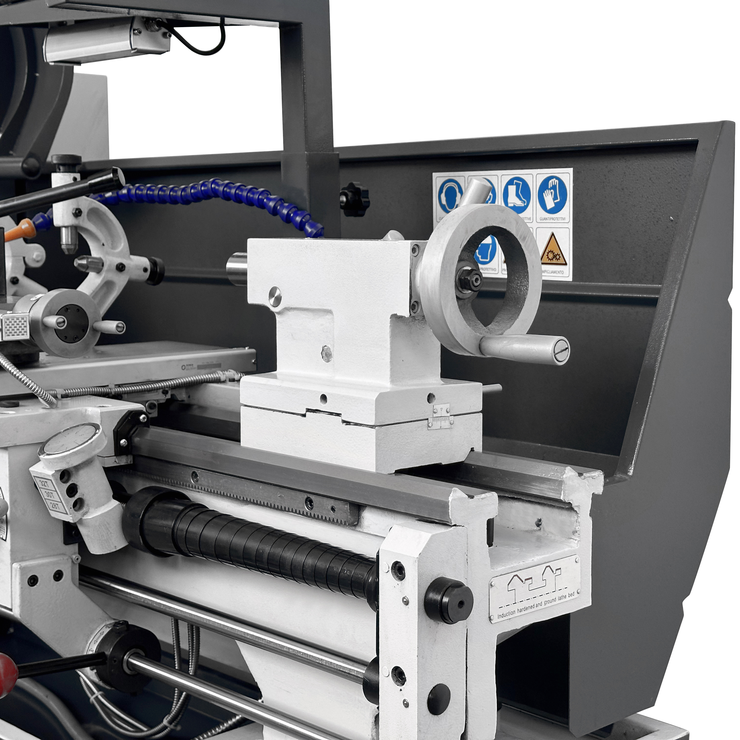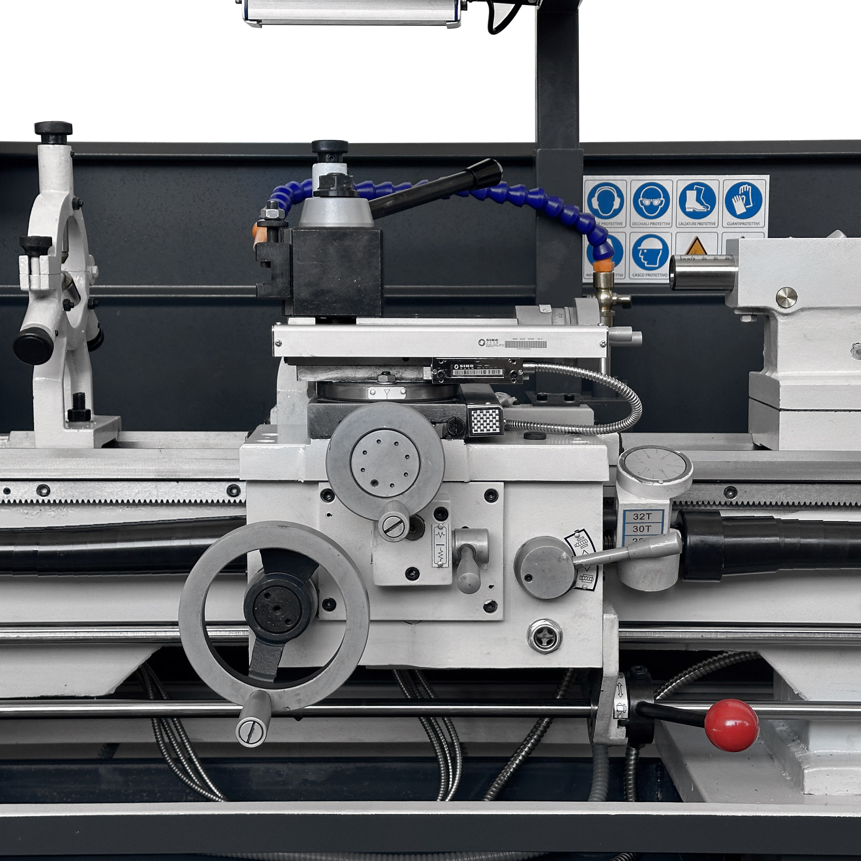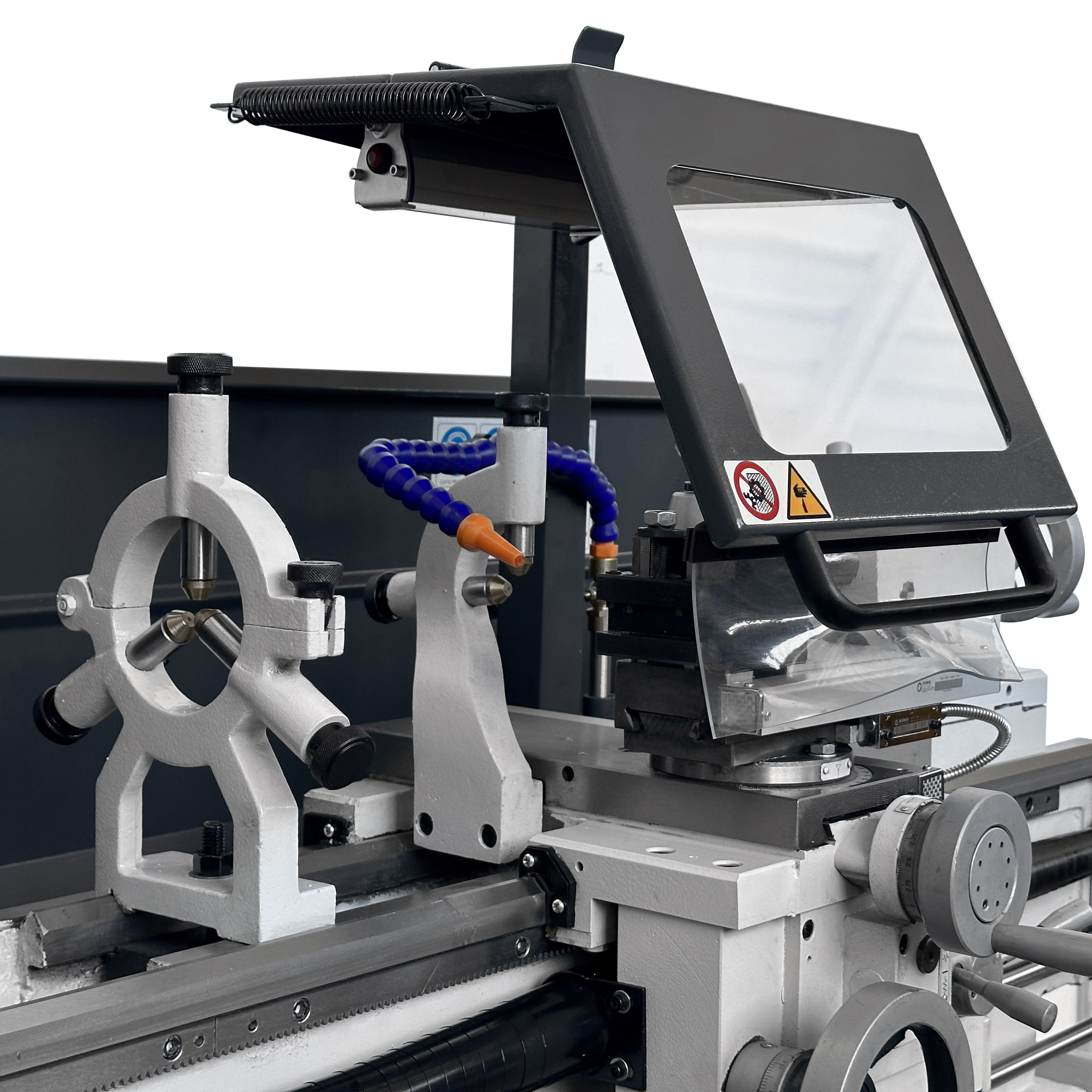La macchina vanta di serie un impianto di illuminazione LED, un sistema di lubrorefrigerazione ed un impianto di lubrificazione guide centralizzato ad azionamento manuale. Sempre di serie, è incluso il visualizzatore di quote, strumento dal design funzionale e moderno, in grado di visualizzare la posizione dell'utensile in 3 assi con precisioni fino a 0.5 µm. Il tornio per metalli SOGI M4-910D è fornito di basamento di appoggio con vano per riporre utensili ed altro materiale indispensabile per la lavorazione. Presente anche il comparatore di filettature.
