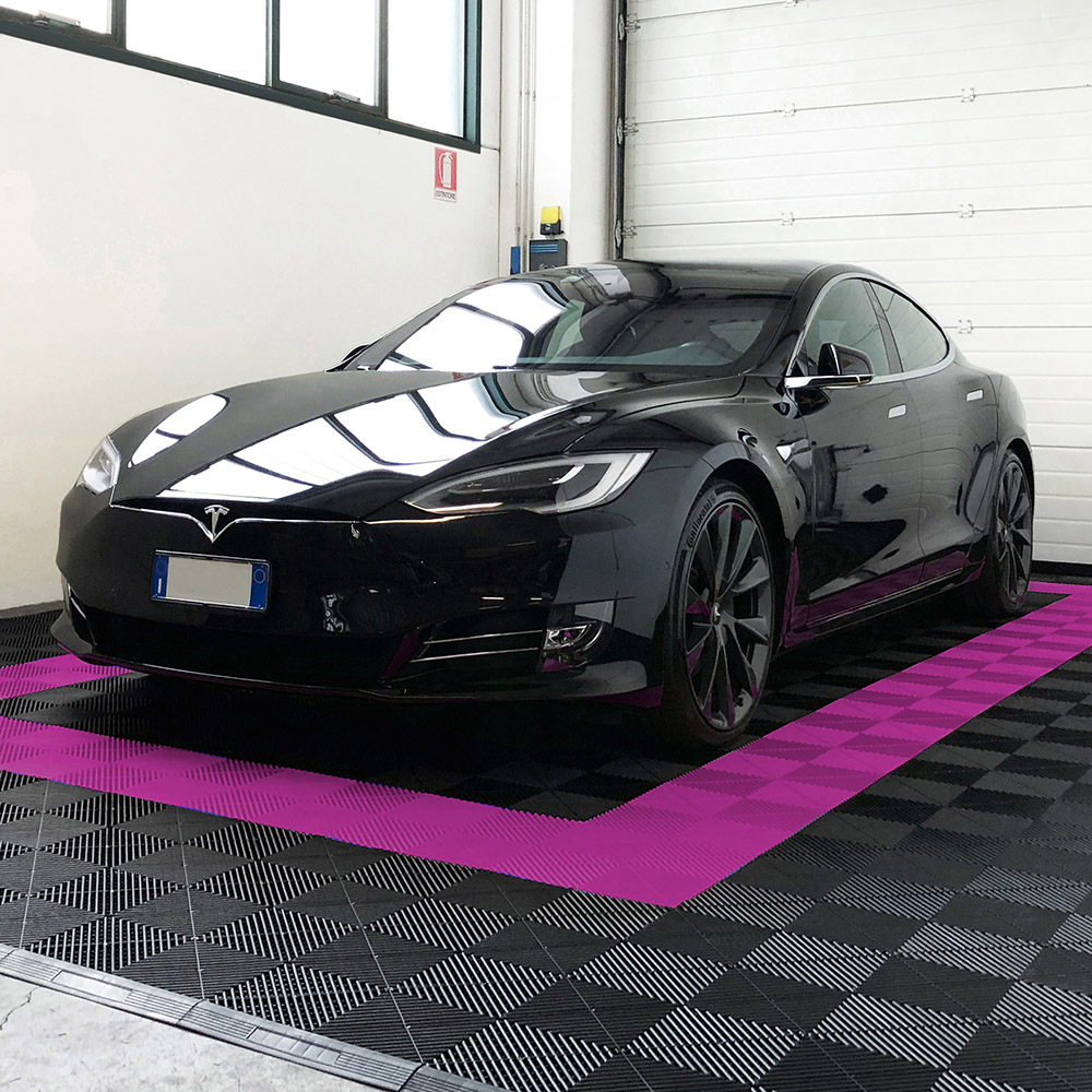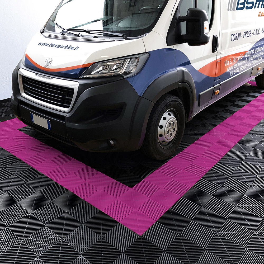 Kit da 62 piastrelle 10 mq SOGI PAV-03-FU_2 in PP per pavimento officina e garage - colore fucsia