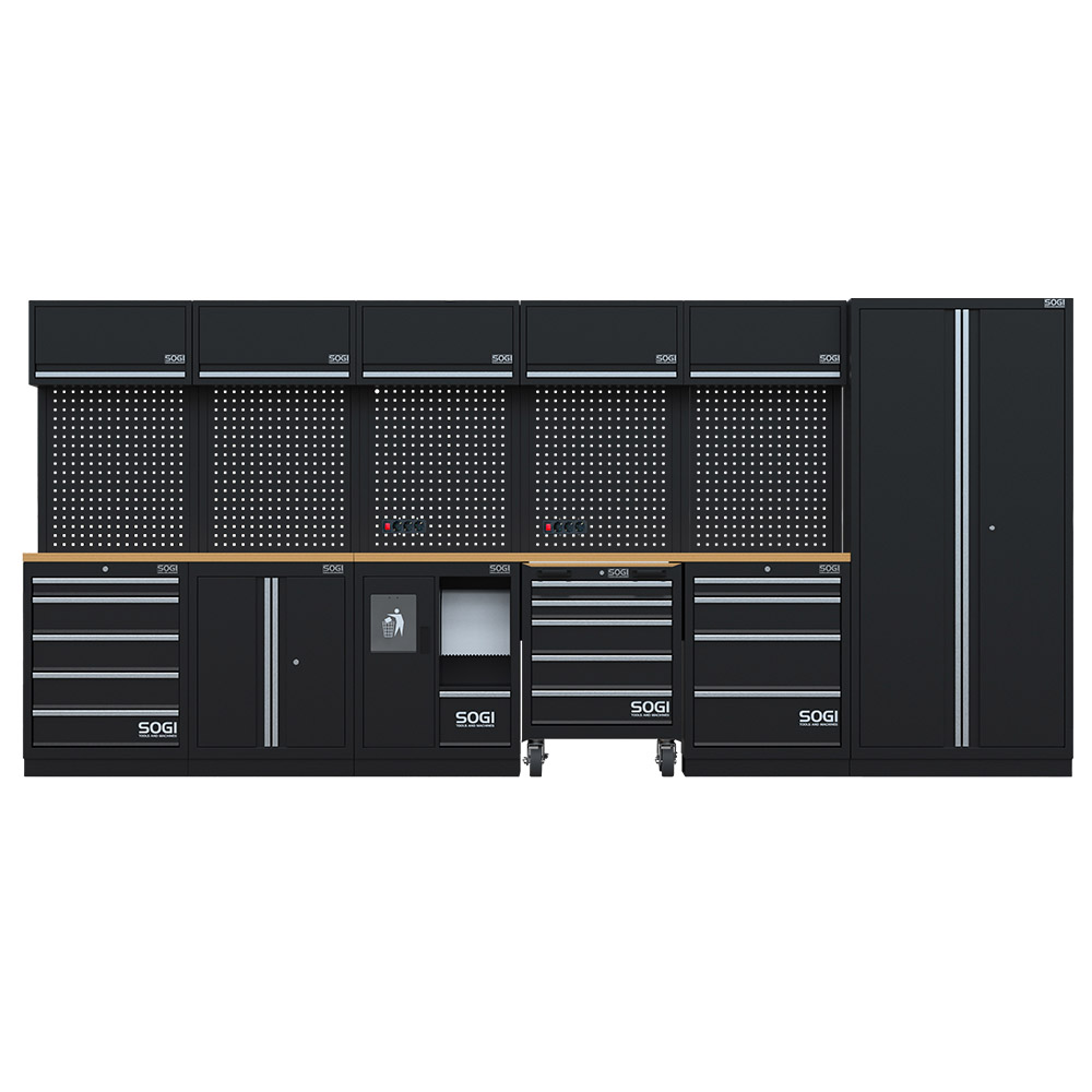 Il suo punto di forza è la modularità: ciò consente a chi decide di acquistare questo innovativo arredamento di scegliere come combinare i diversi moduli per rispondere alle più svariate esigenze. Che si tratti di un'officina, un garage o una carrozzeria, sarà possibile disporre i diversi elementi che compongono l'arredo SOGI ARR-OFF-4320-L come si vuole.
