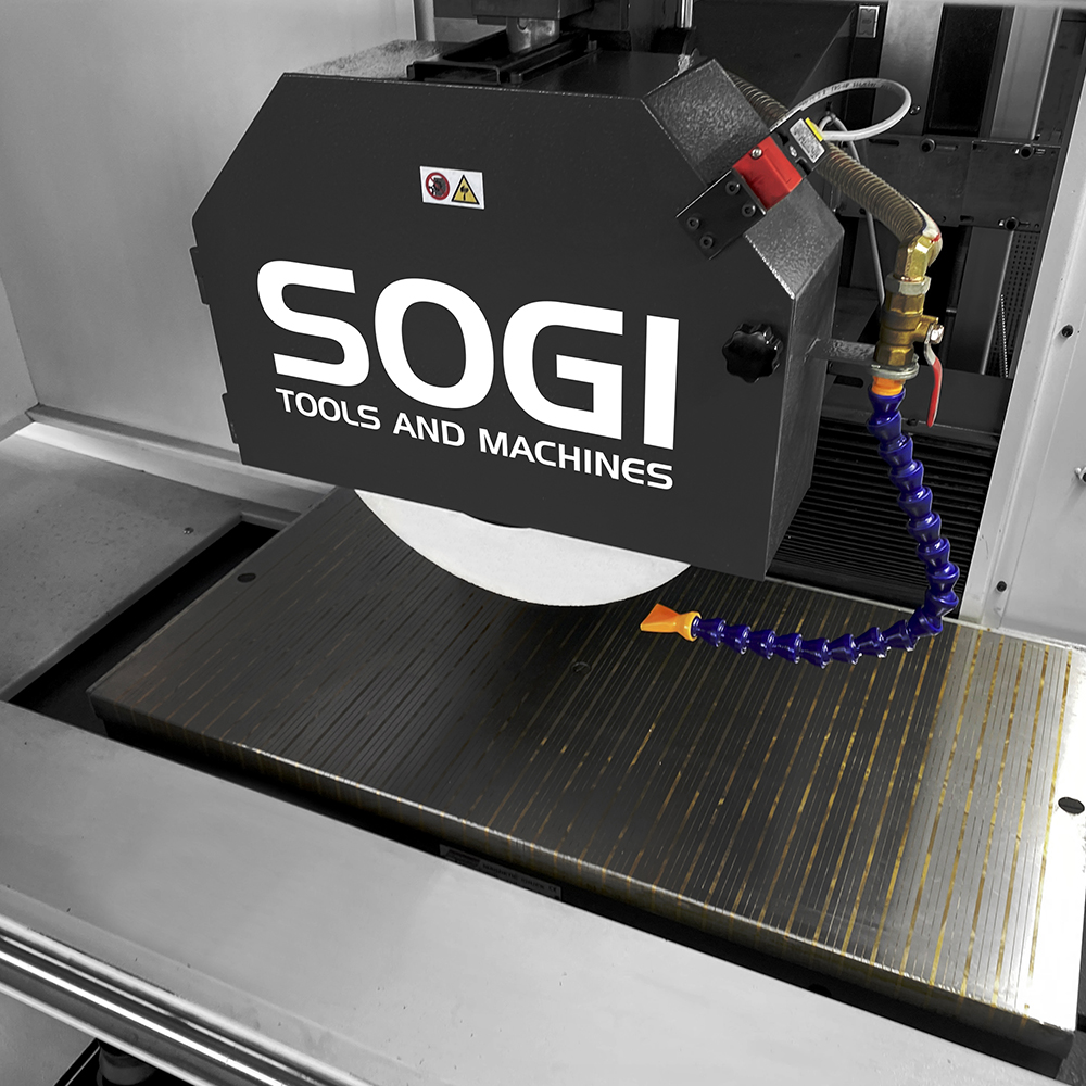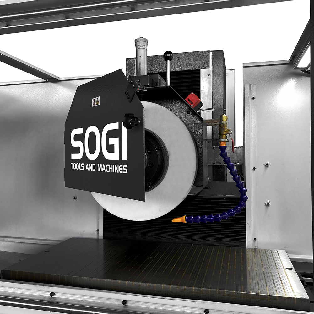 Strutturalmente la rettifica tangenziale SOGI RT-800 è costituita da un bancale in ghisa grigia che supporta una tavola portapezzo provvista di piano magnetico elettropermanente per l'ancoraggio dei componenti da lavorare: grazie alla consolidata tecnologia tedesca, i tempi di carico/scarico pezzo si riducono, la sicurezza durante le operazioni aumenta e la flessibilità di utilizzo è assicurata.