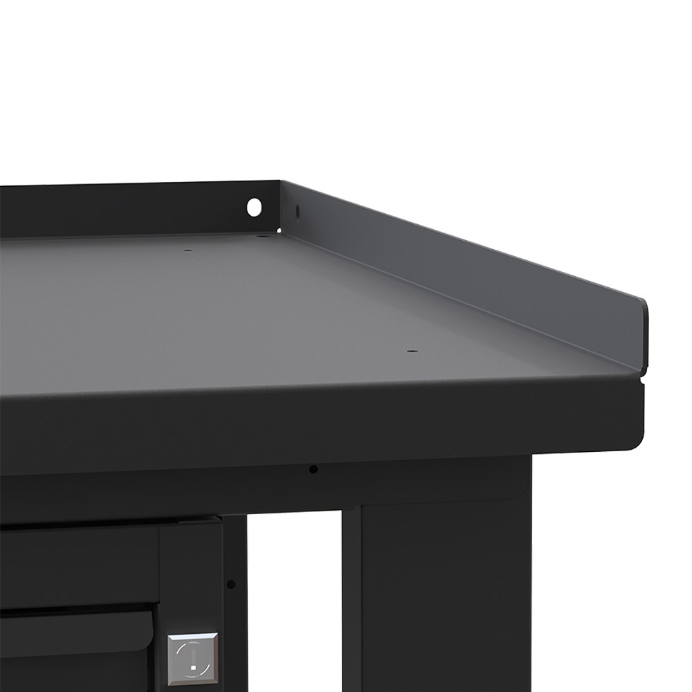 Il banco da lavoro SOGI X3N_105A vanta una struttura particolarmente robusta, composta da scatolari metallici di diverse sezioni: ha quattro gambe provviste di piastre per il fissaggio a terra, un telaio perimetrale rinforzato locato sotto il piano di lavoro ed è munito di 2 cassetti (codice singolo prodotto: SOGI X3N_A-01). Grazie alla pratica chiusura con serratura a cilindro, è possibile custodire all'interno di ciascun cassetto anche oggetti di valore.