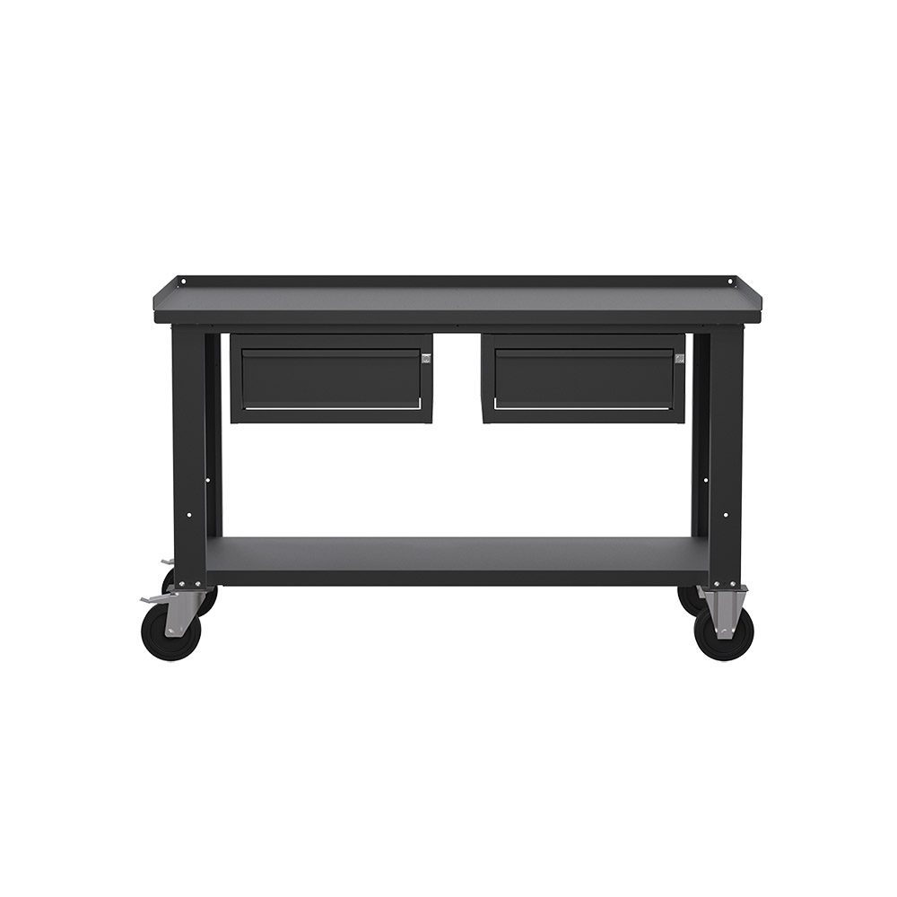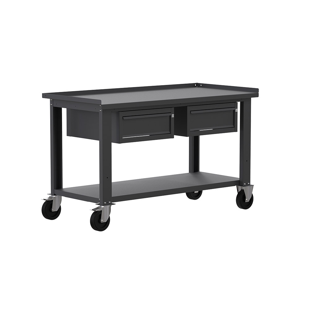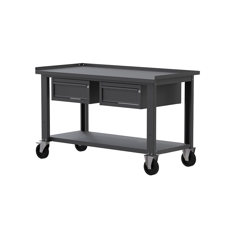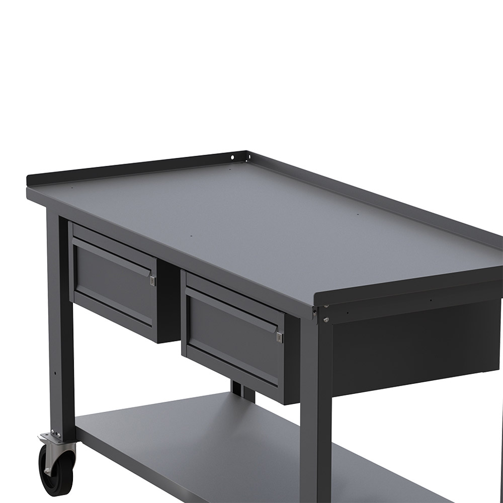 Banco da lavoro con ruote SOGI X3N_105AR - 1.5 m - piano in acciaio - 1 + 1 cassetti - grigio antracite