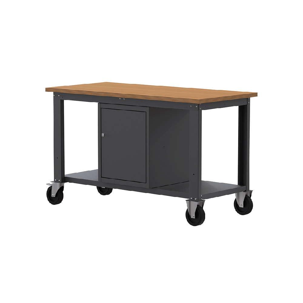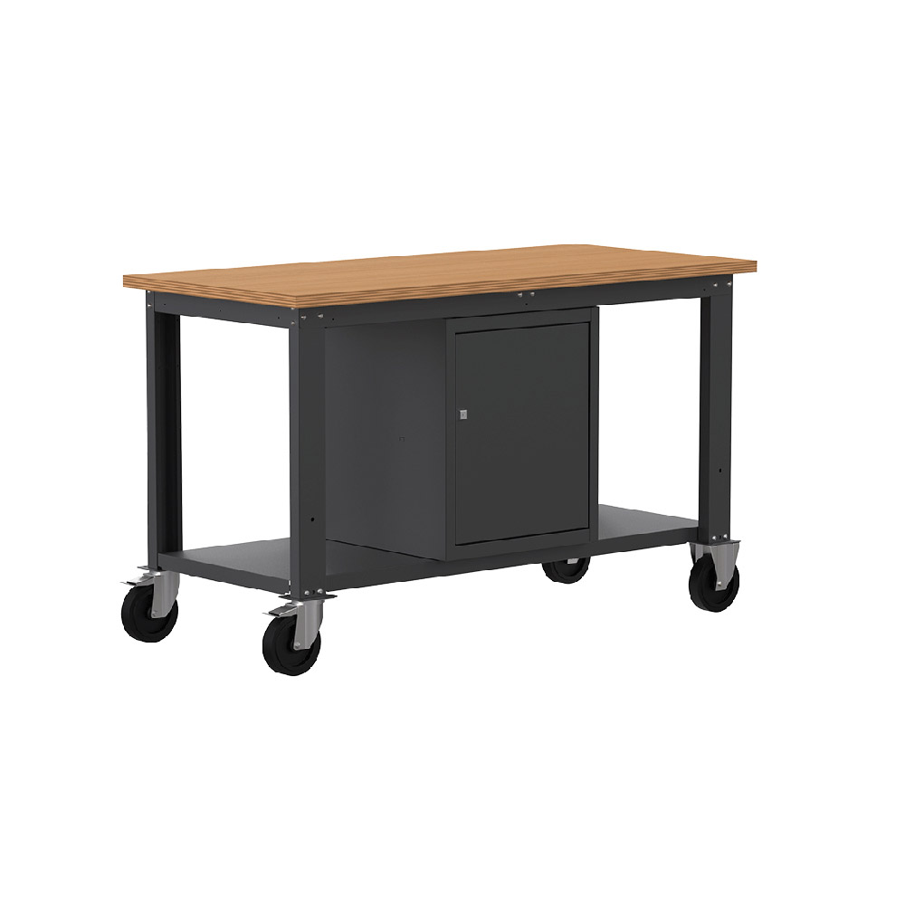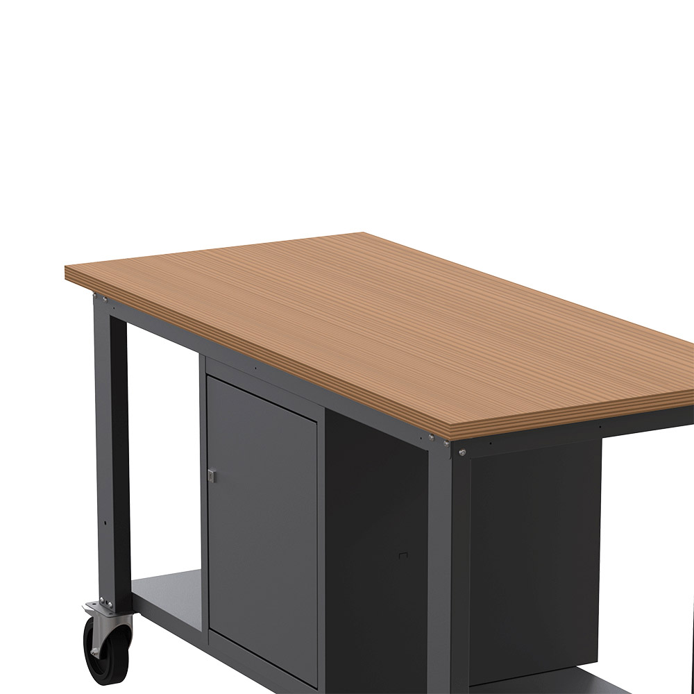 Banco da lavoro con ruote SOGI X3N_104LR - 1.5 m - piano in legno - armadio con anta - grigio antracite