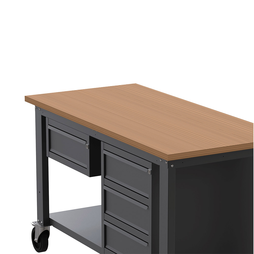 Banco lavoro con ruote SOGI X3N_106LR- 1.5 m - piano in legno - 1 + 3 cassetti - grigio antracite