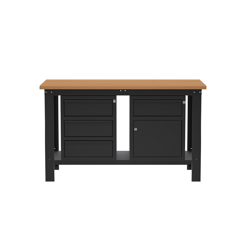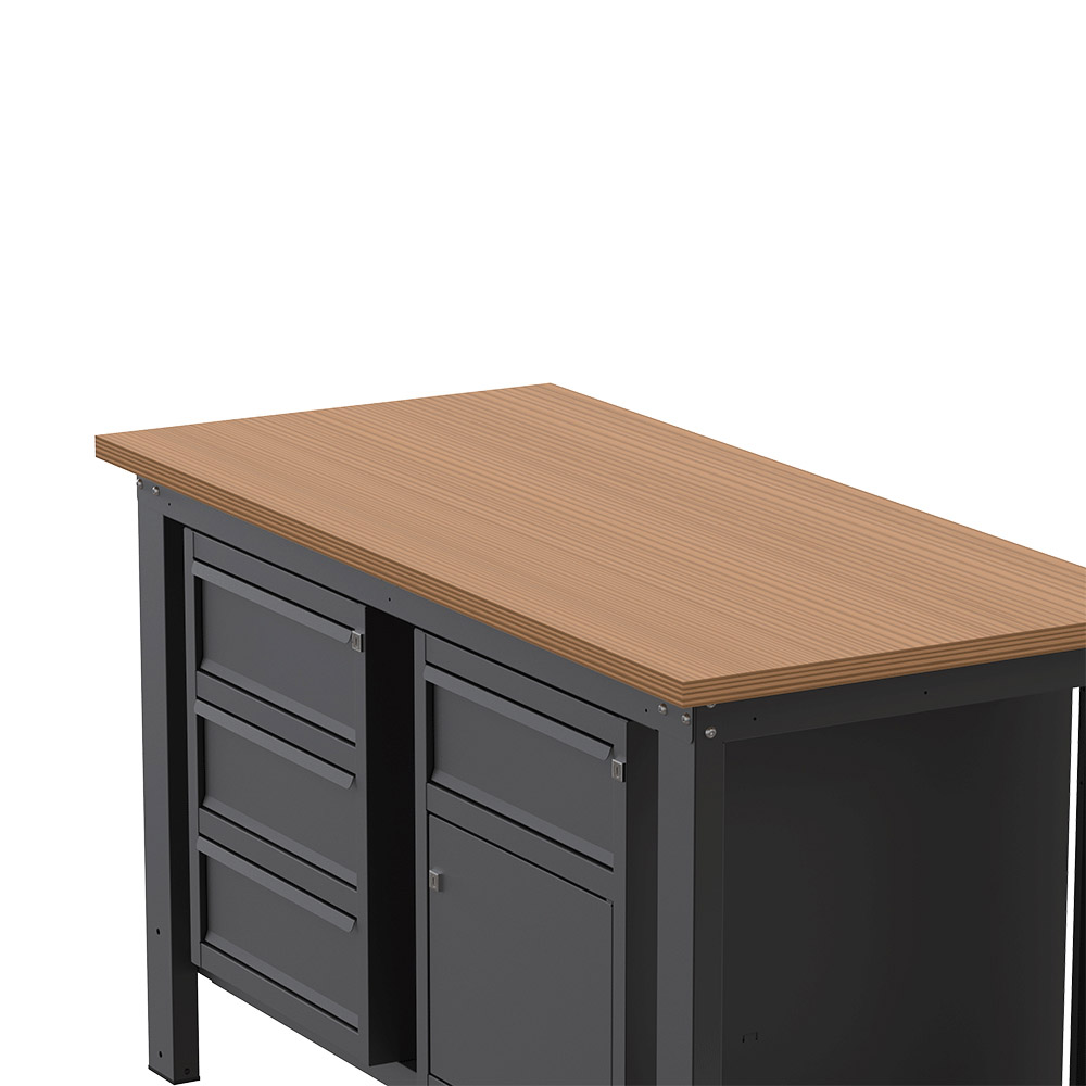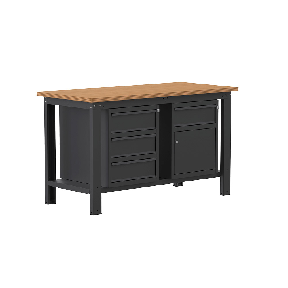 Banco lavoro SOGI X3N_109L - 1.5 m - piano in legno - 3 cassetti + armadio con anta e cassetto