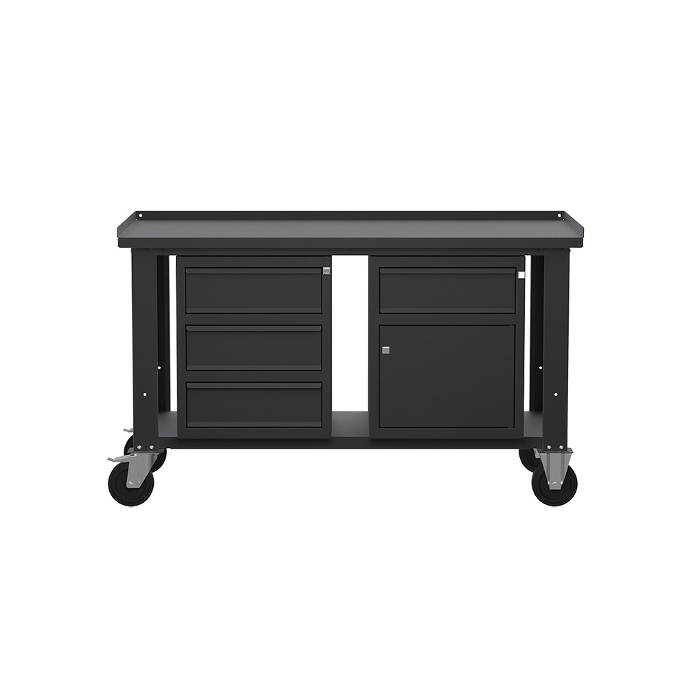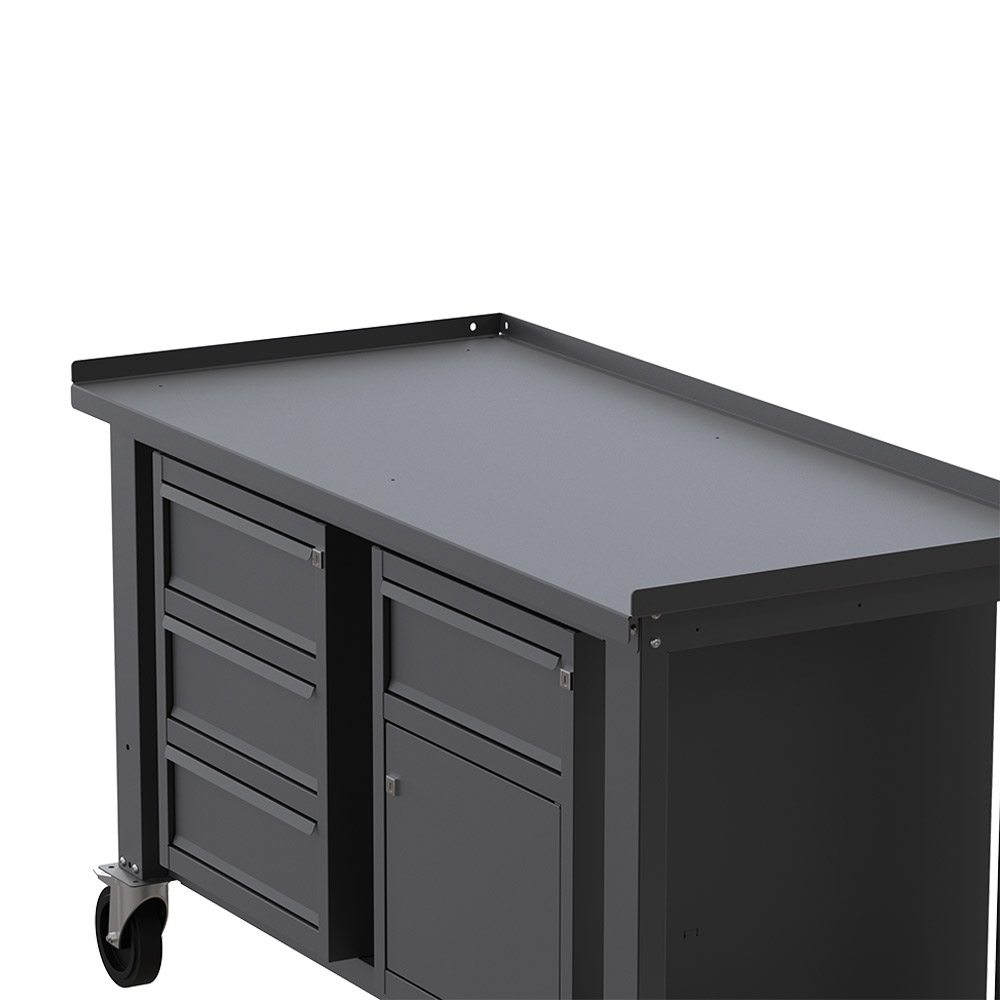Banco lavoro con ruote SOGI X3N_109AR - 1.5 m - piano in acciaio - 3 cassetti + anta e cassetto