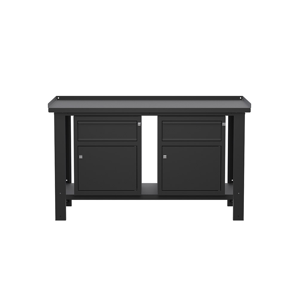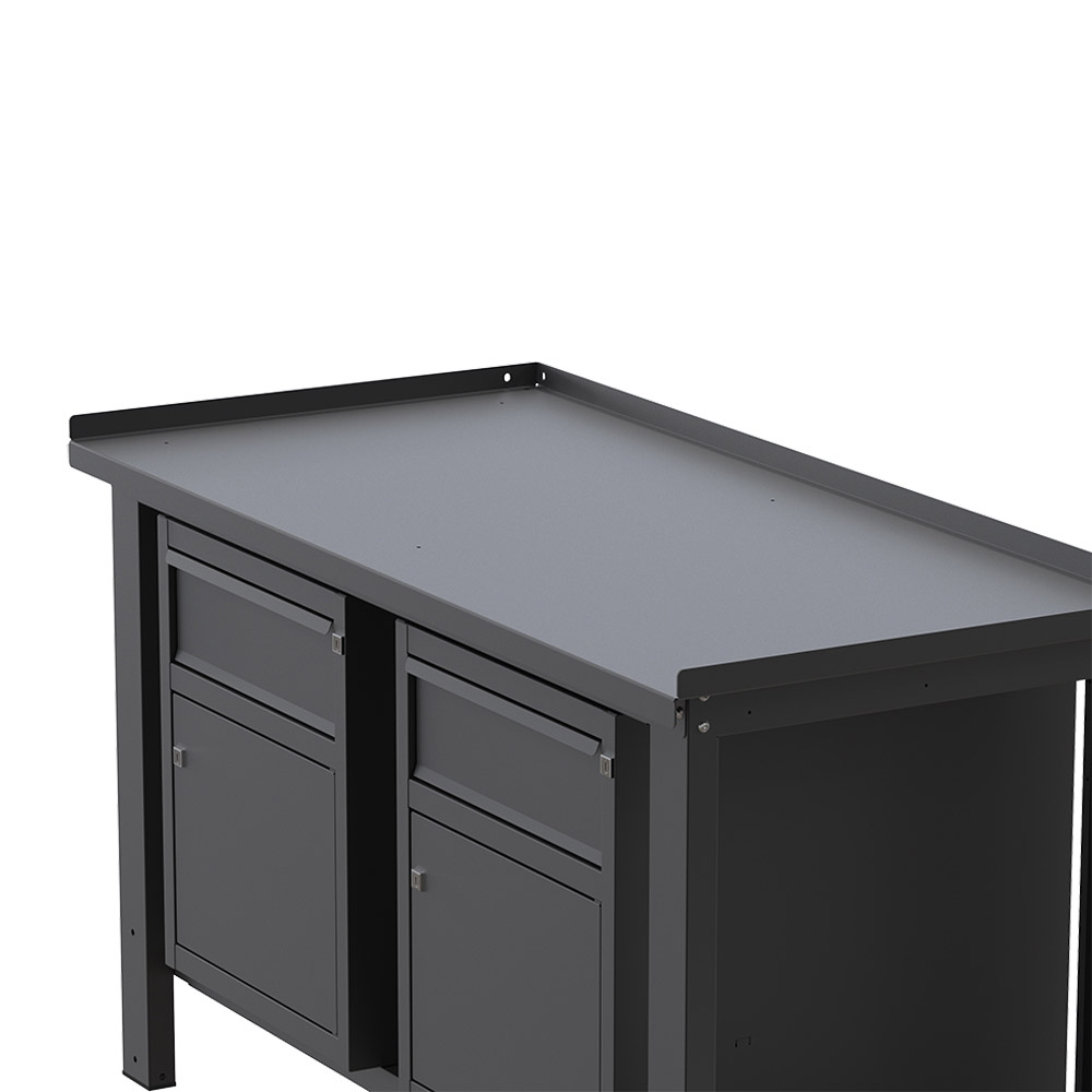 Banco lavoro SOGI X3N_110A - 1.5 m - piano in acciaio - 2 armadi con anta e cassetto