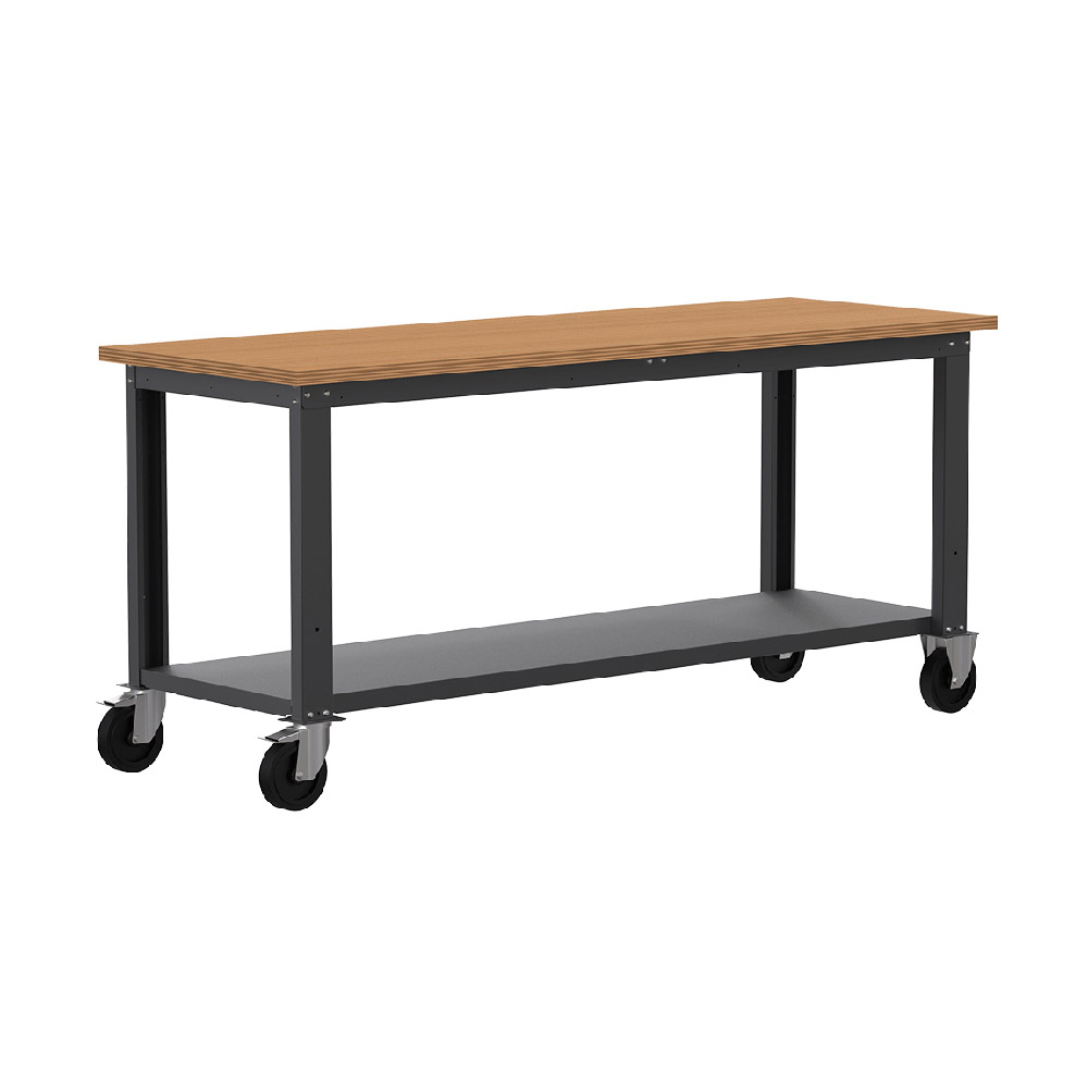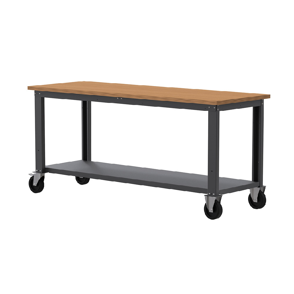 Banco da lavoro con ruote SOGI X3N_112LR - 2 m - piano in legno - grigio antracite