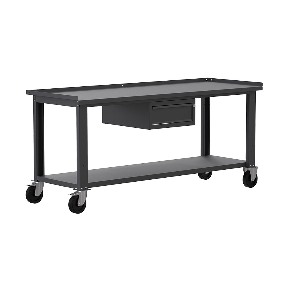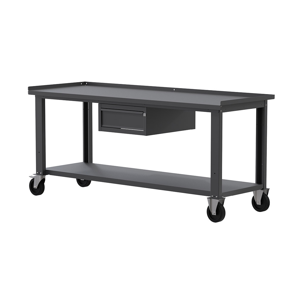 Banco da lavoro con ruote SOGI X3N_113AR - 2 m - piano in acciaio - 1 cassetto