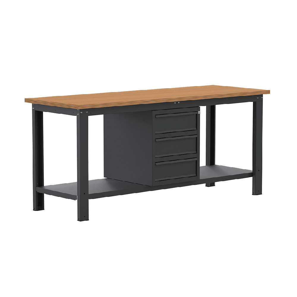 Banco da lavoro SOGI X3N_114L - 2 m - piano in legno - 3 cassetti - grigio antracite