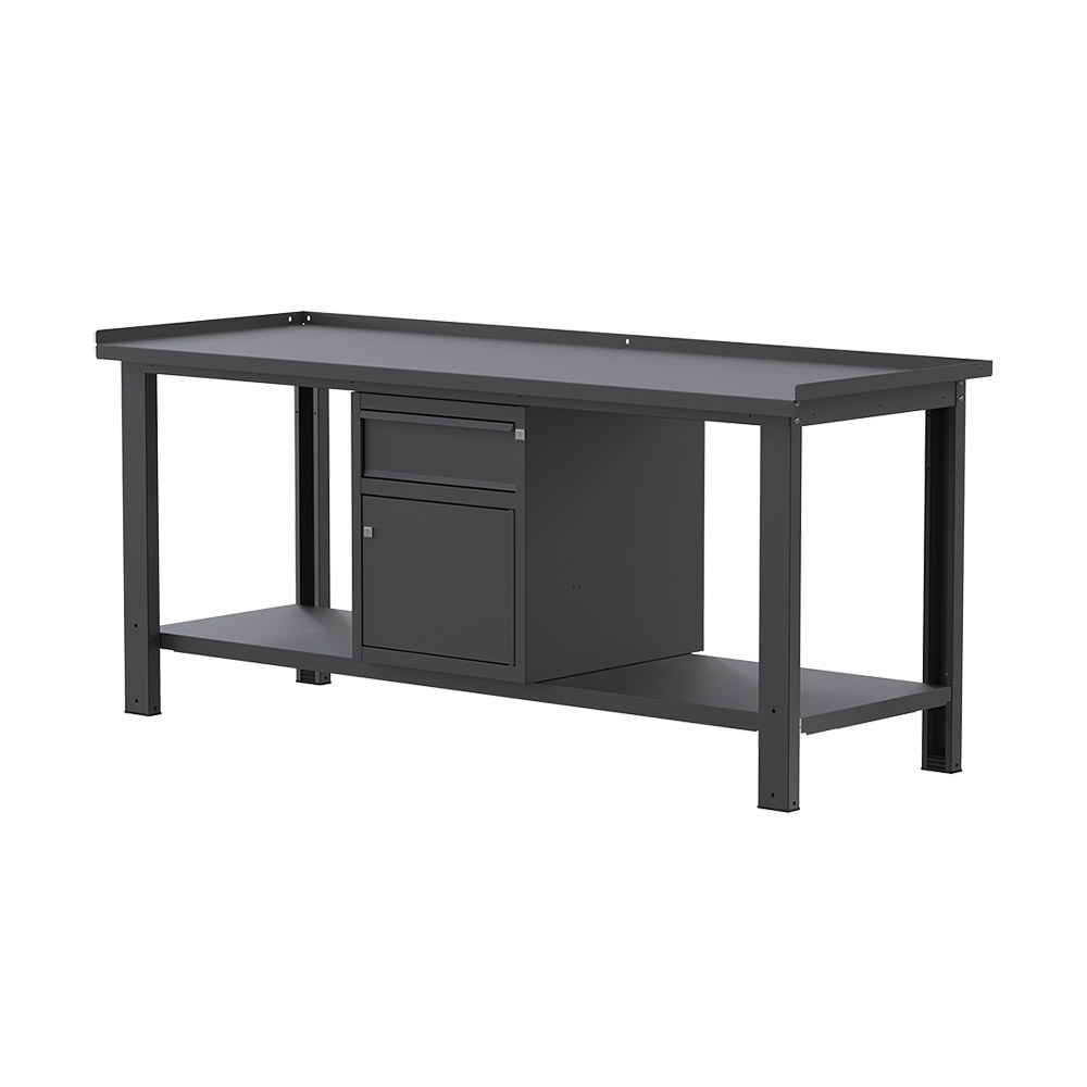Banco da lavoro SOGI X3N_115A - 2 m - piano in acciaio - armadio con anta e cassetto