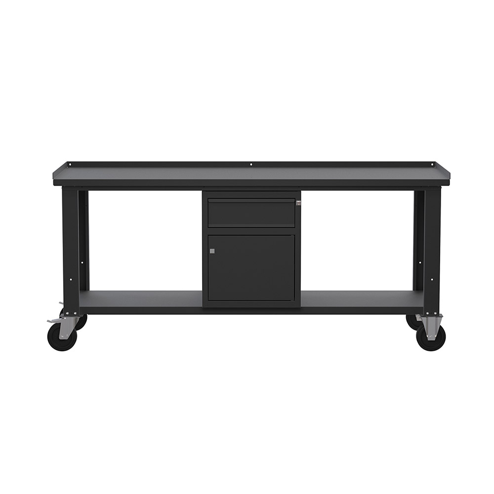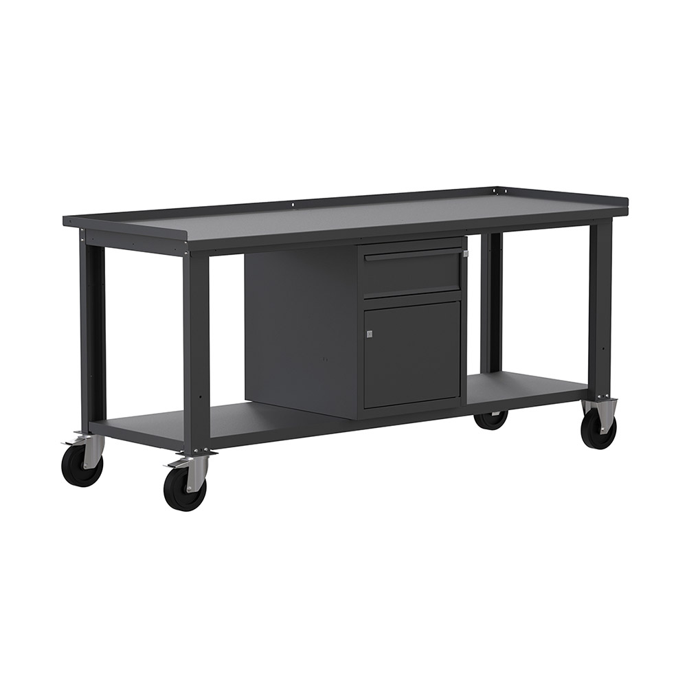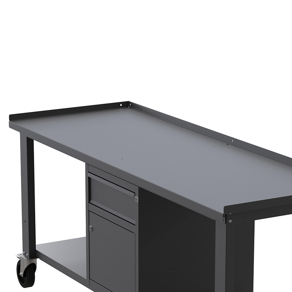Banco lavoro con ruote SOGI X3N_115AR - 2 m - piano in acciaio - armadio con anta e cassetto