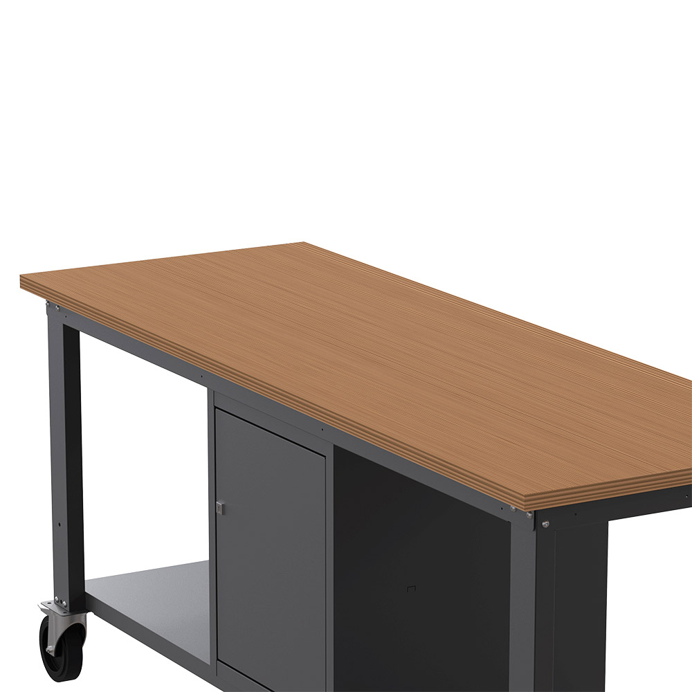 Banco da lavoro con ruote SOGI X3N_116LR - 2 m - piano in legno - armadio con anta