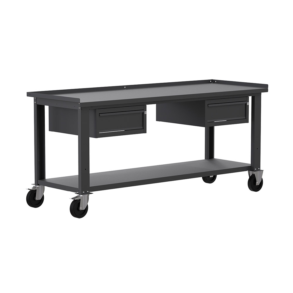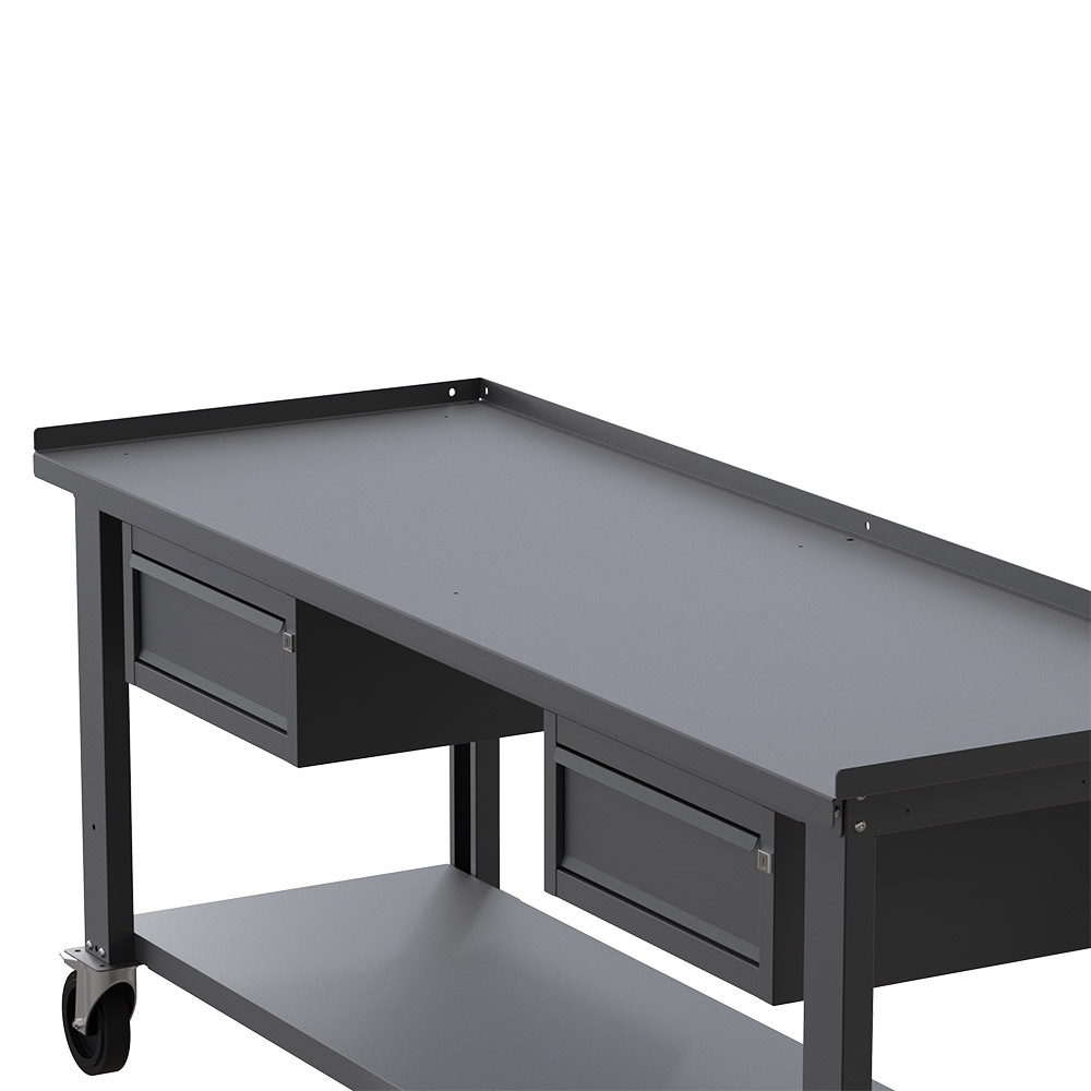Banco da lavoro con ruote SOGI X3N_117AR - 2 m - piano in acciaio - 1 + 1 cassetti