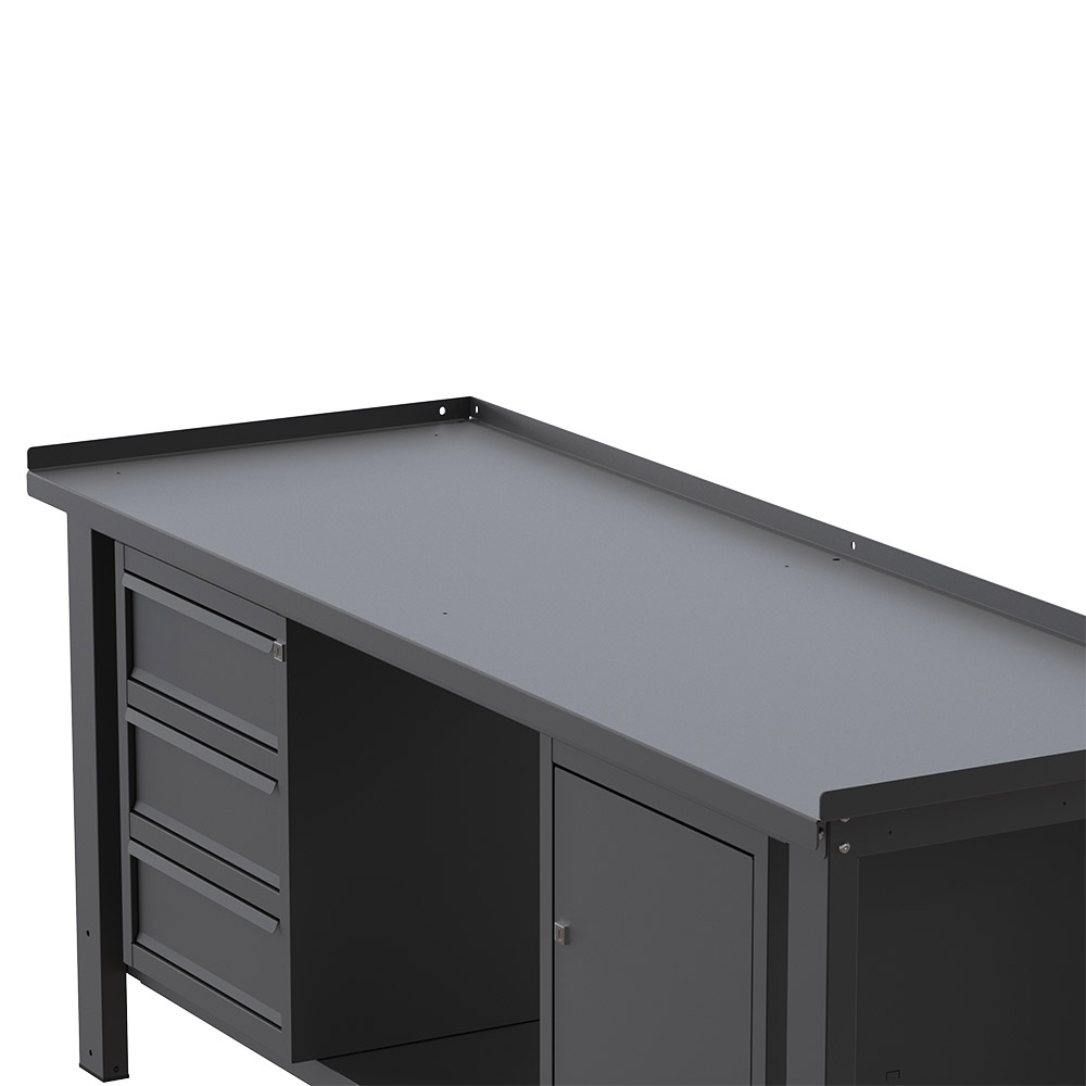 Il piano di lavoro, realizzato in lamiera spessa ben 3 mm, rappresenta la superficie di appoggio ideale in tutti quei lavori che richiedono elevata resistenza a corrosione, ristrette condizioni igieniche, ottima resistenza al calore ed alle macchie. Il banco da lavoro SOGI X3N_122A è totalmente verniciato a polveri nella colorazione grigio antracite (RAL 7016).