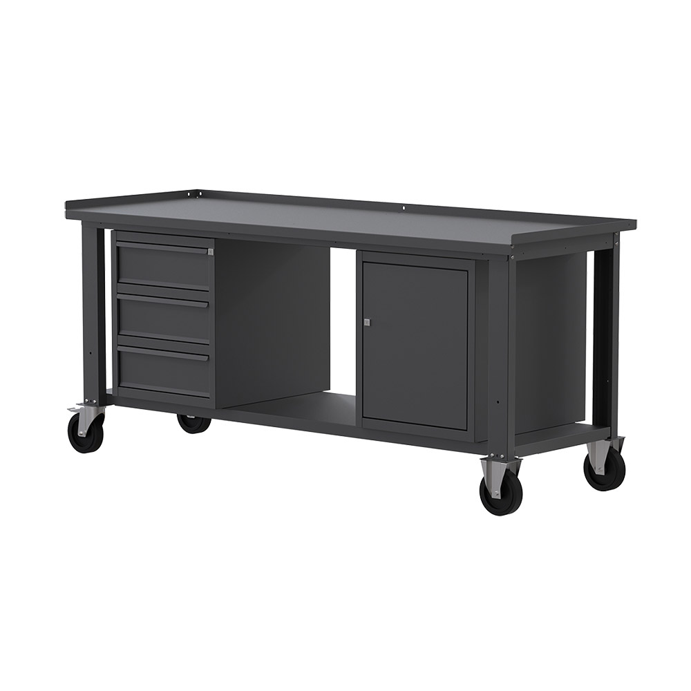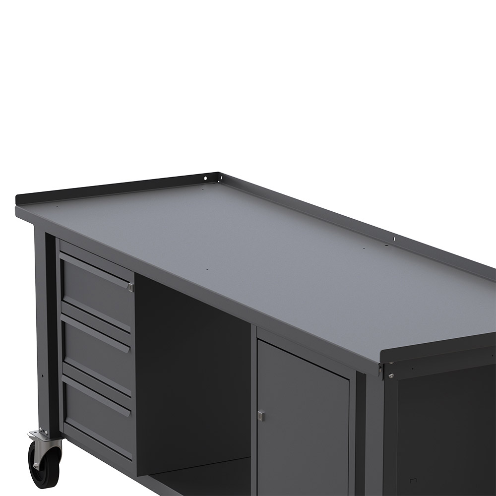 Banco lavoro con ruote SOGI X3N_122AR - 2 m - piano in acciaio - 3 cassetti + armadio con anta