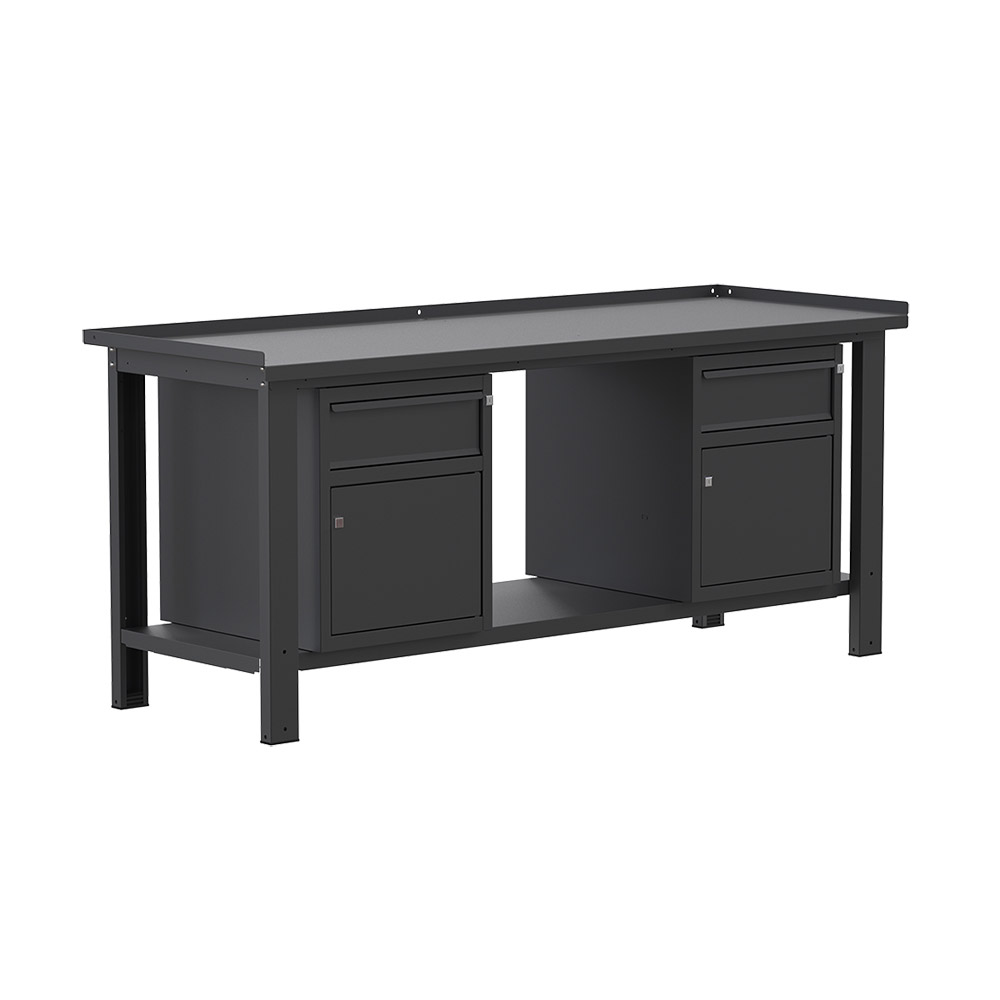 Banco lavoro SOGI X3N_123A - 2 m - piano in acciaio - 2 armadi con anta e cassetto