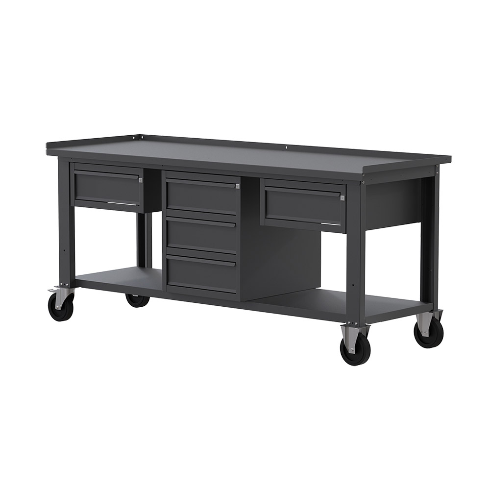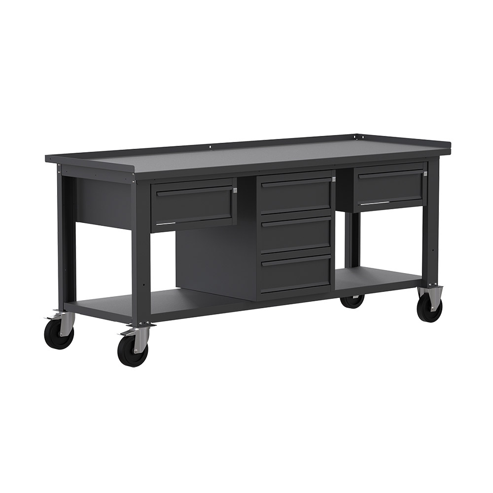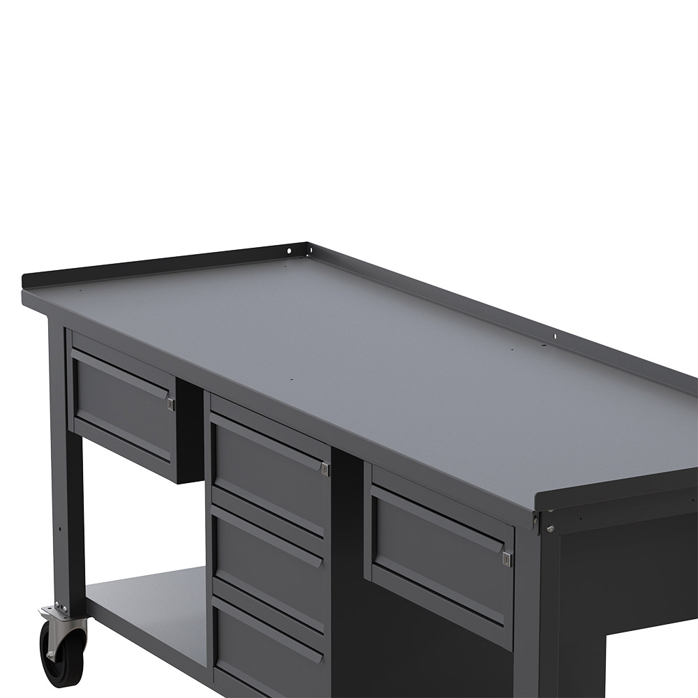 Banco da lavoro con ruote SOGI X3N_125AR - 2 m - piano in acciaio - 1 + 3 + 1 cassetti