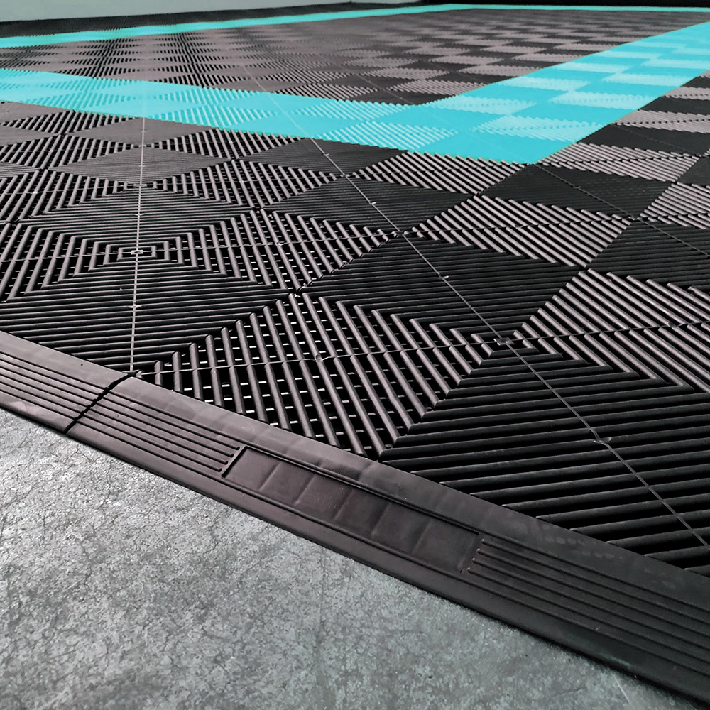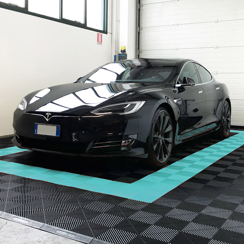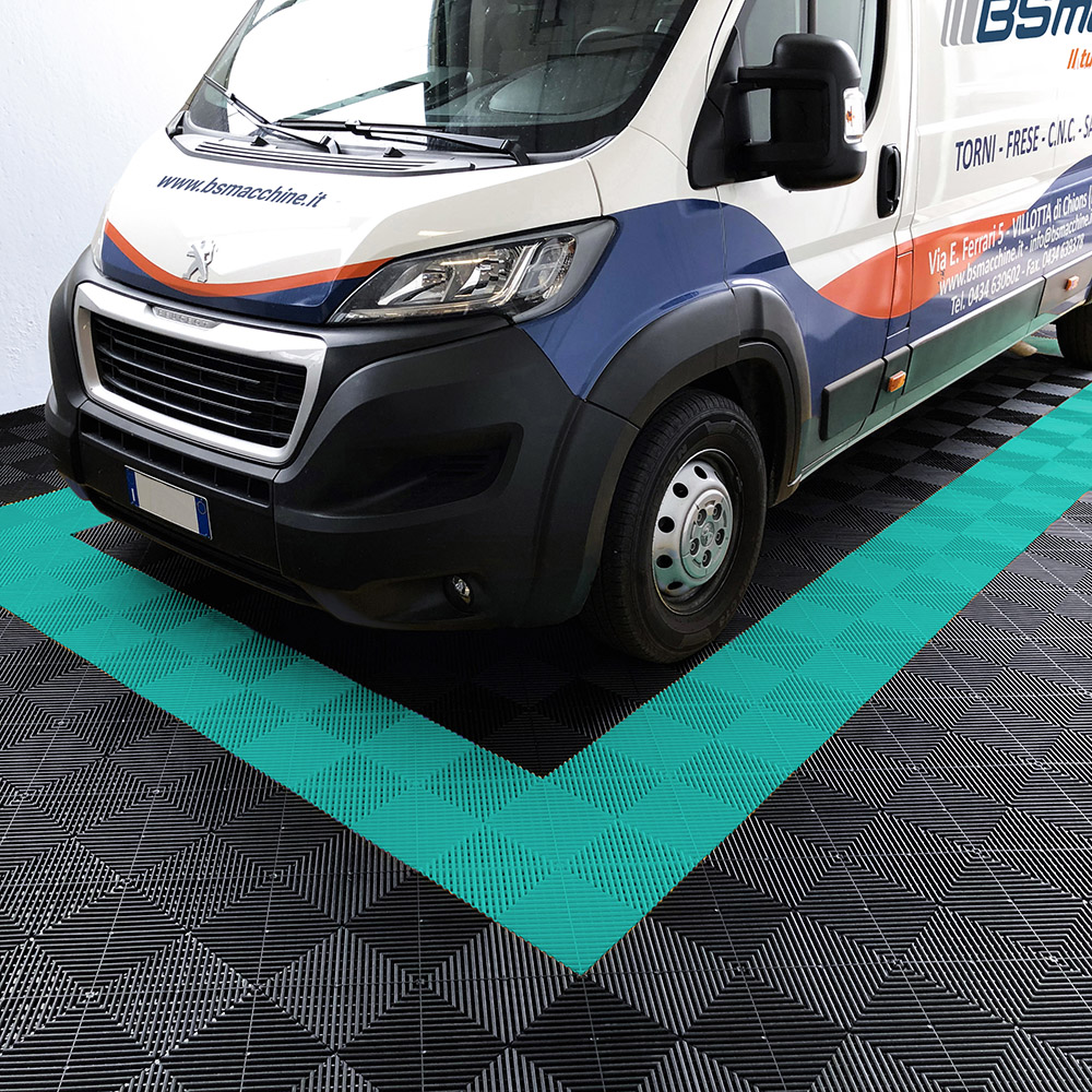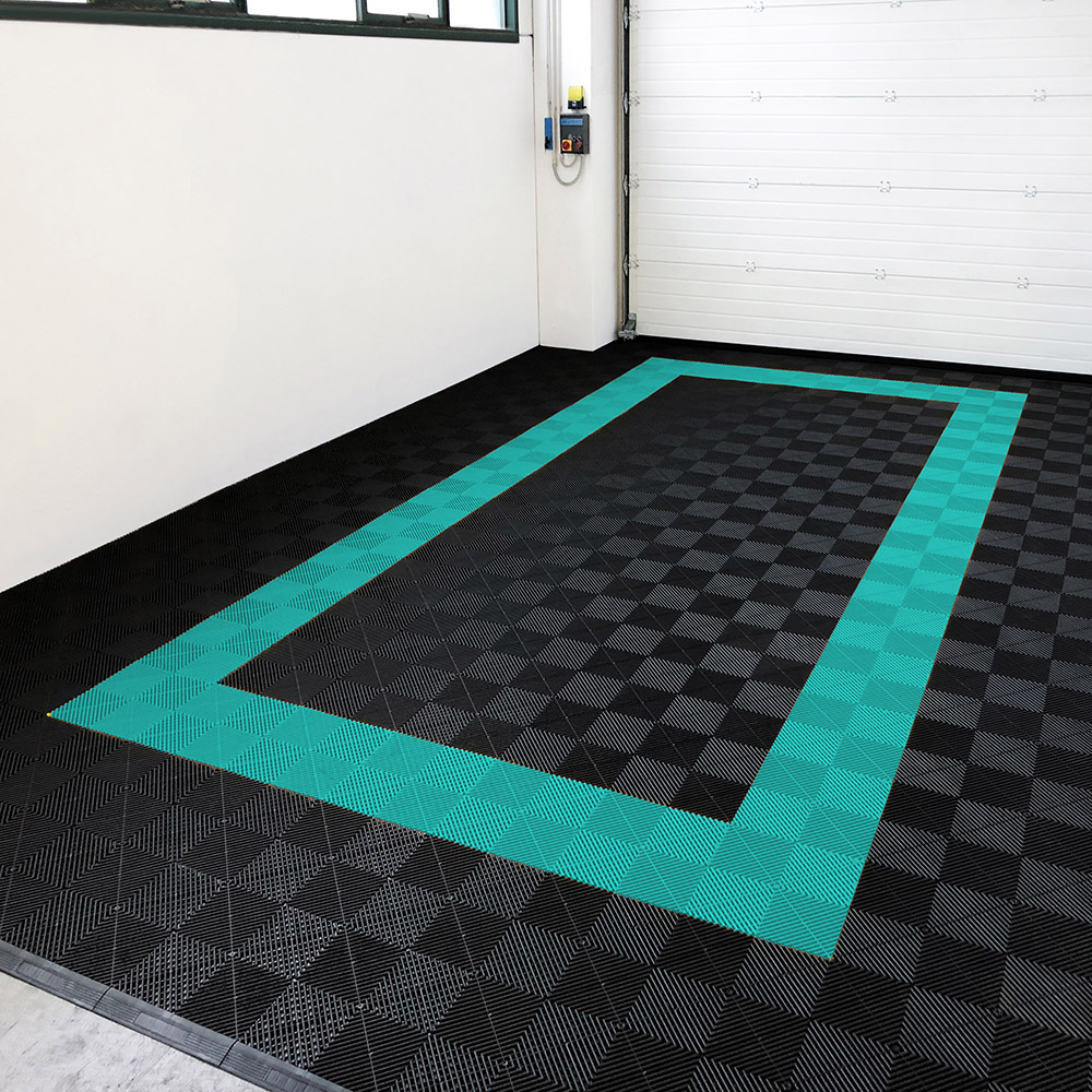 Kit da 625 piastrelle 100 mq SOGI PAV-03-TU_4 in PP per pavimento officina e garage - colore turchese