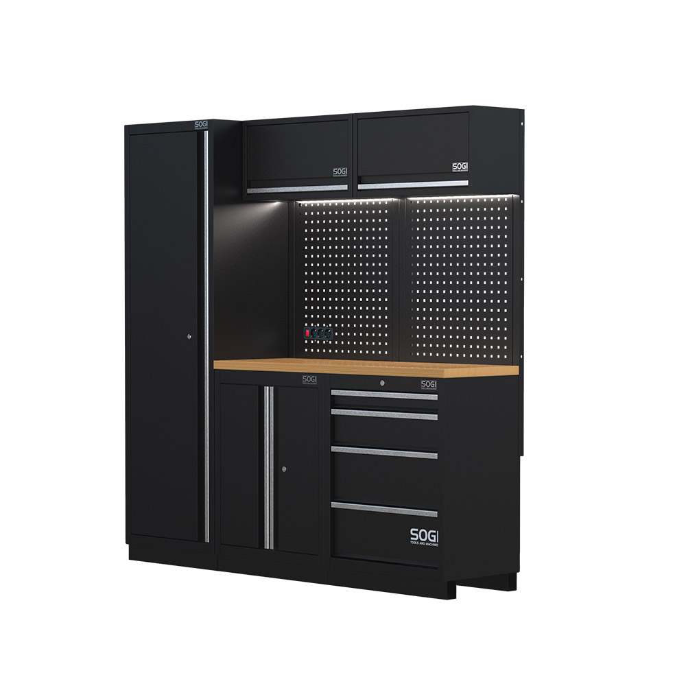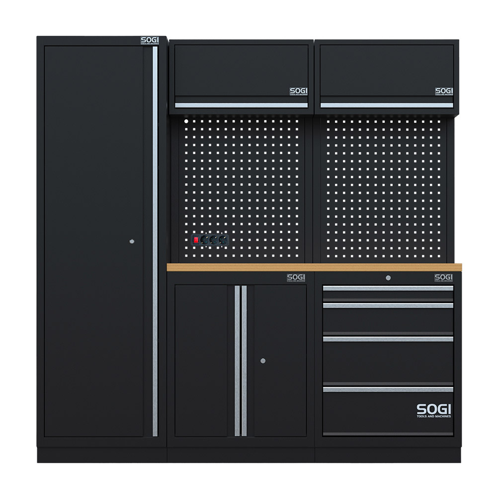 Il suo punto di forza è la modularità: ciò consente a chi decide di acquistare questo innovativo arredamento di scegliere come combinare i diversi moduli per rispondere alle più svariate esigenze. Che si tratti di un'officina, un garage o una carrozzeria, sarà possibile disporre i diversi elementi che compongono l'arredo SOGI ARR-OFF-1960-L come si vuole.