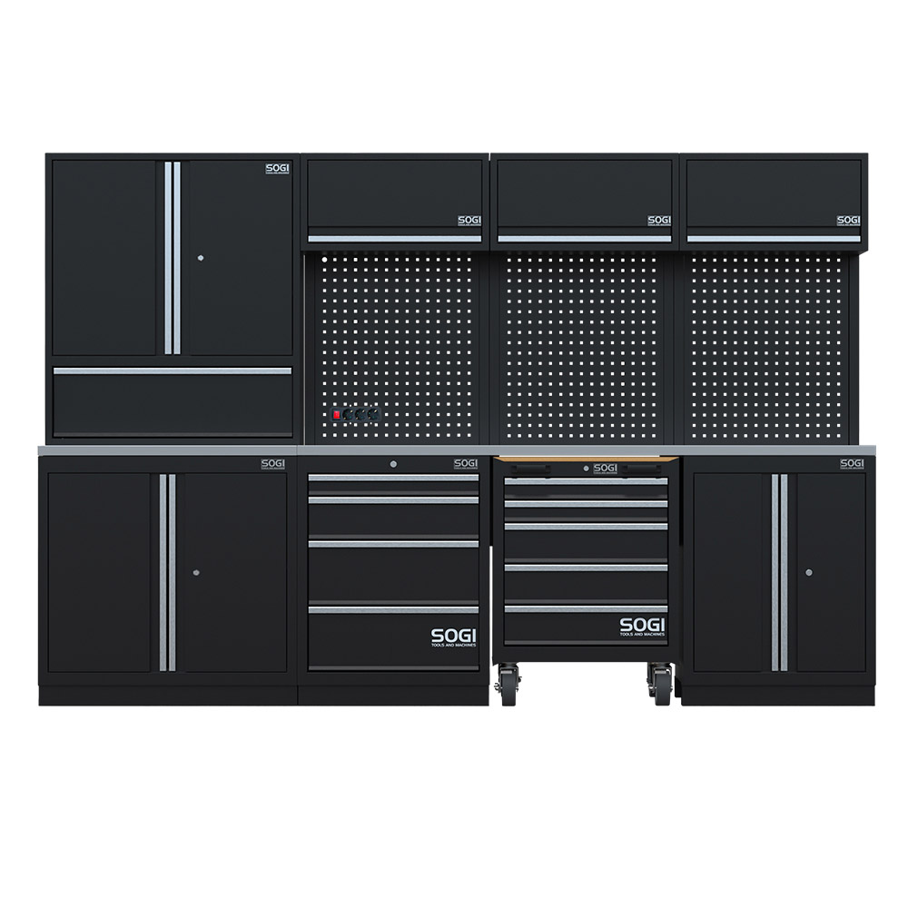 Il suo punto di forza è la modularità: ciò consente a chi decide di acquistare questo innovativo arredamento di scegliere come combinare i diversi moduli per rispondere alle più svariate esigenze. Che si tratti di un'officina, un garage o una carrozzeria, sarà possibile disporre i diversi elementi che compongono l'arredo SOGI ARR-OFF-2955-A come si vuole.