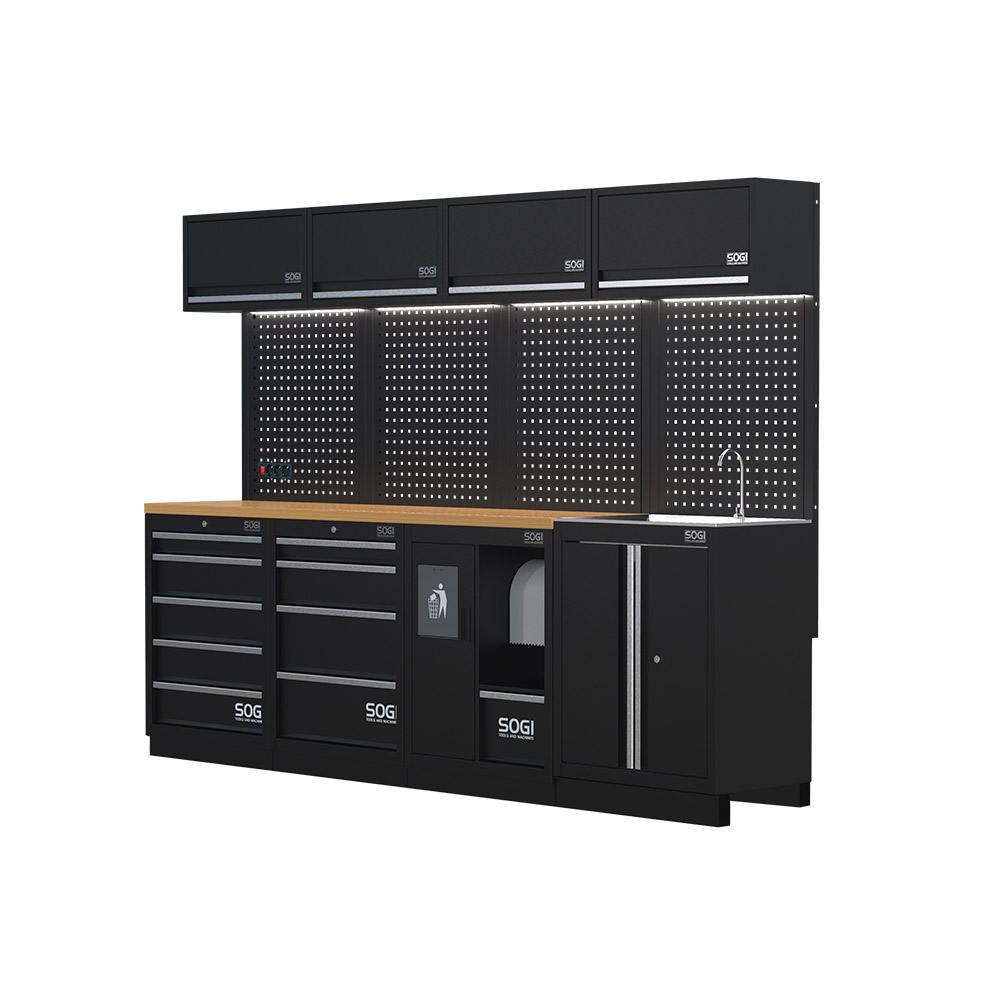 Il suo punto di forza è la modularità: ciò consente a chi decide di acquistare questo innovativo arredamento di scegliere come combinare i diversi moduli per rispondere alle più svariate esigenze. Che si tratti di un'officina, un garage o una carrozzeria, sarà possibile disporre i diversi elementi che compongono l'arredo SOGI ARR-OFF-2720-L come si vuole.