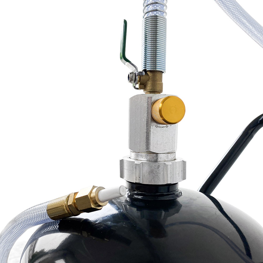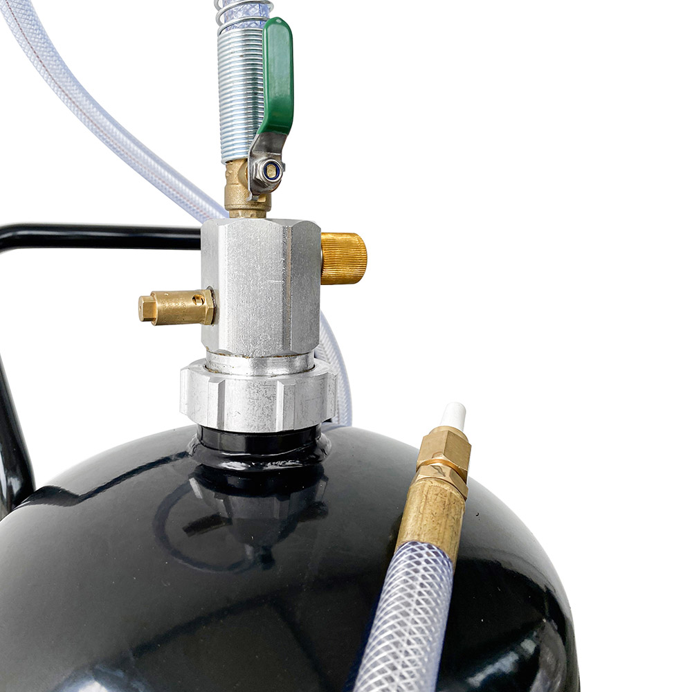 La sabbiatrice professionale SOGI SPS-7 ha un serbatoio in metallo da 26.5 L (7 galloni) il cui riempimento avviene dall’alto semplicemente svitando una ghiera e sollevando la cannula interna. Una pratica maniglia consente di spostare la sabbiatrice da una zona all’altra servendosi di due solide ruote gommate sul fondo.