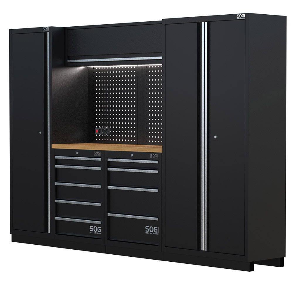 Arredamento modulare per officina e garage SOGI ARR-OFF-2875-L - piano in legno - 2875x465x2000 mm