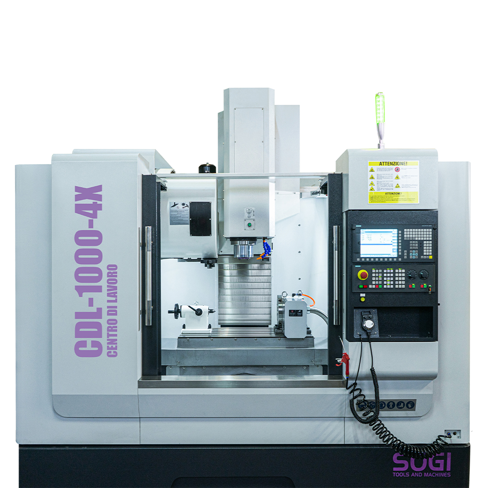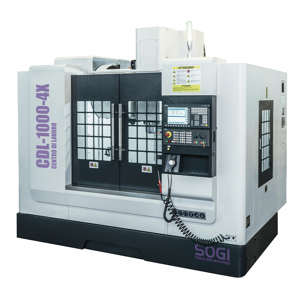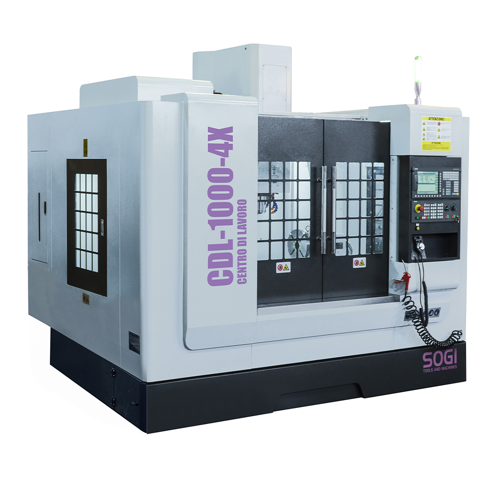 Il centro di lavoro verticale SOGI CDL-1000-4X è una macchina a controllo numerico a quattro assi in grado di effettuare molteplici lavorazioni su materiali metallici e leghe derivate, materiali polimerici e molto altro. Grazie alla sua versatilità d'utilizzo, la macchina si presta particolarmente bene ad un impiego nel campo industriale e prototipazione per la messa a punto di componenti più o meno complessi garantendo un'elevata precisione nel risultato (giunti, alberi di trasmissione ecc.).