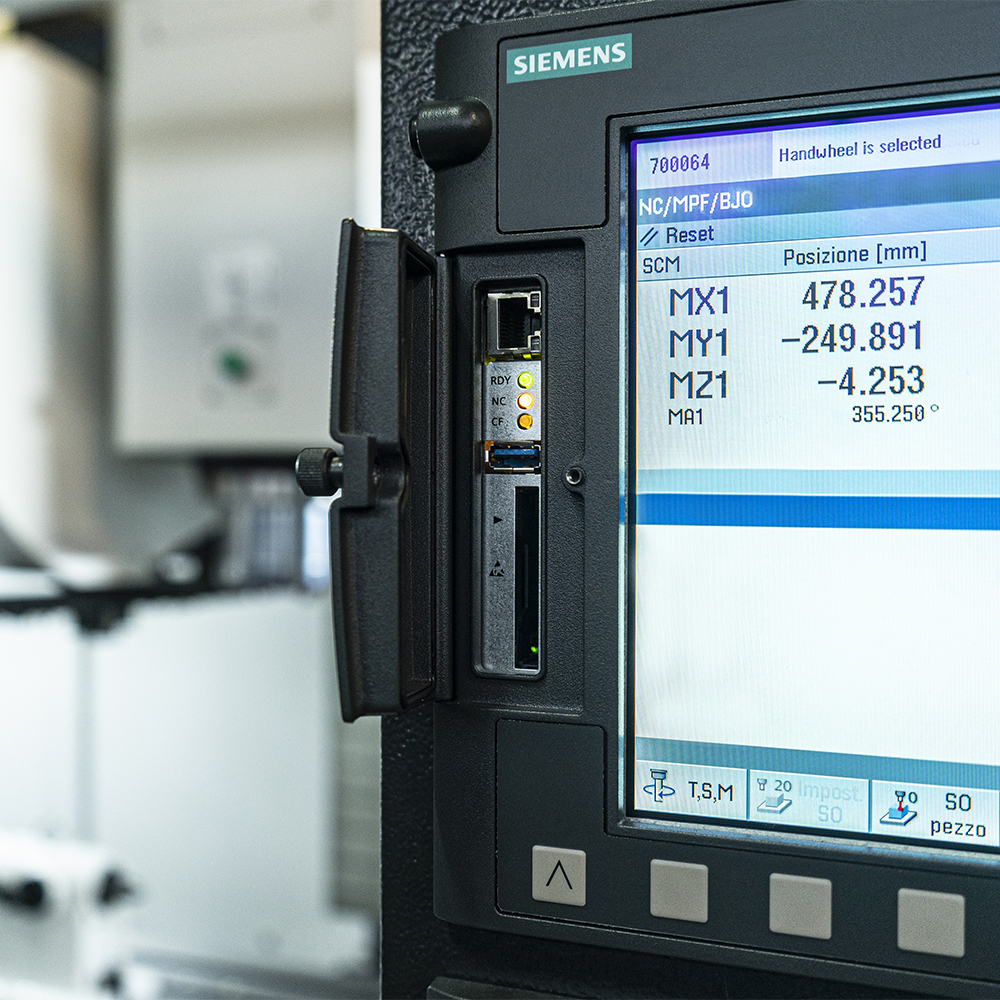 • Servomotori AC controllati da azionamenti SIEMENS. Tale configurazione garantisce elevate performance in termini di velocità e accuratezza del posizionamento, assicurandone un'elevata ripetibilità nel tempo.