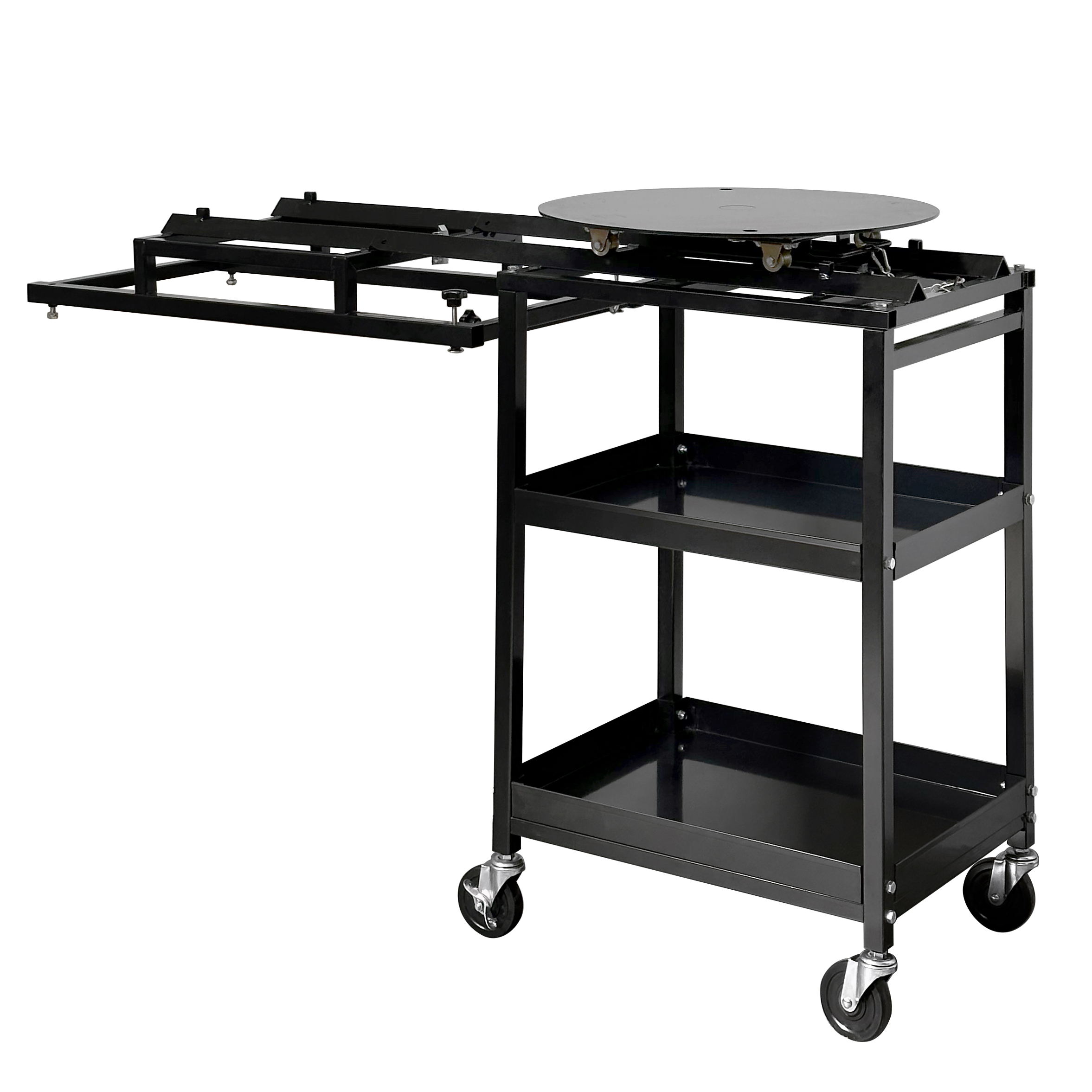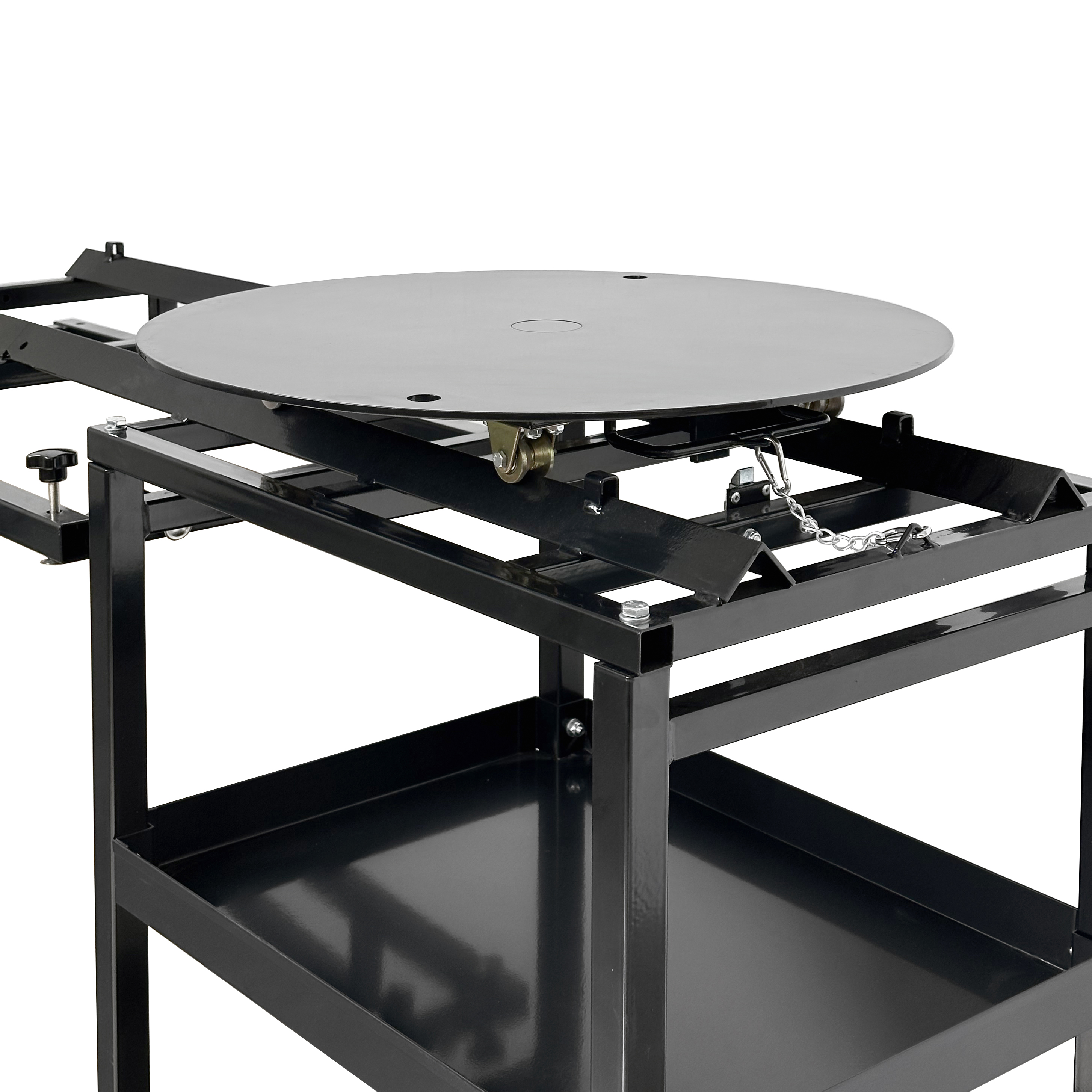 Realizzato in acciaio Q235 e SPCC, il carrello SOGI CR-GR-120 vanta un piatto rotante di diametro Ø 460 mm, è verniciato a polveri nella colorazione nera e può sostenere carichi fino a 300 kg. La presenza di ben 2 ripiani di appoggio dalle dimensioni generose consente lo stoccaggio del materiale in lavorazione.